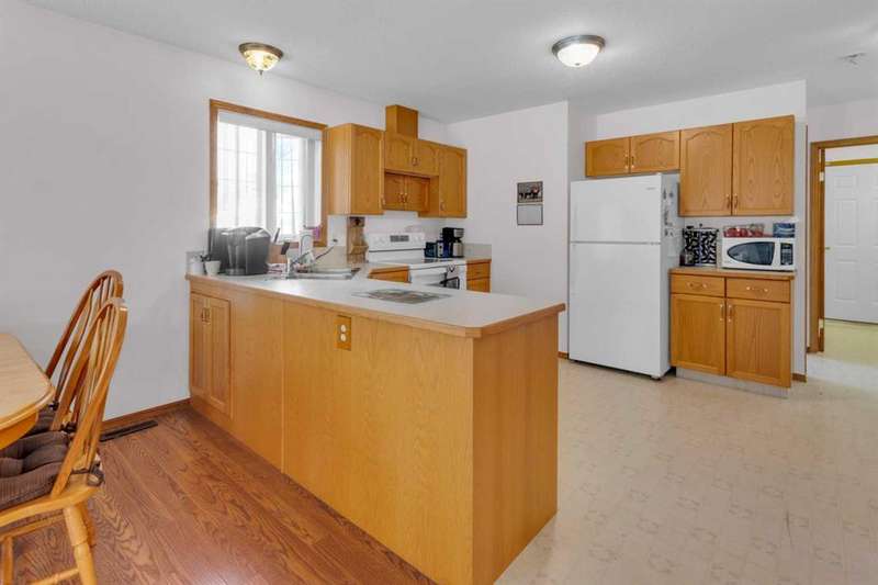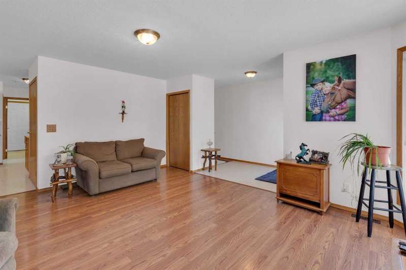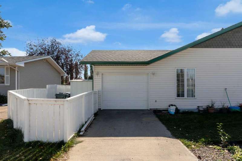 Welcome to this beautifully maintained home offering comfort, convenience, and lifestyle all in one. Perfectly situated on a large corner lot, this property is just steps from Main Street, shopping, the hospital, and all the amenities the friendly town of Didsbury has to offer. Say goodbye to condo fees and pet restrictions, this move-in ready home is ideal for 50+ Adult living, downsizers and investors. Inside, you’ll love the bright open-concept main floor with higher ceilings and an abundance of windows that fill the space with natural light. The spacious living area flows seamlessly into the dining and kitchen space, where you’ll find newer appliances (updated within the last 2 years). Thoughtful touches such as laminate flooring throughout, larger doorways, and a wheelchair-friendly design make this home both stylish and functional. The main level features 2 comfortable bedrooms, a full 4-piece bath, and the convenience of main floor laundry. Downstairs, the fully developed basement offers incredible additional living space with 2 more bedrooms, another 4-piece bath, a cozy family room, and a generous storage area. Step outside to enjoy the fully fenced yard, complete with a doggie door leading to the garage. The attached single garage includes built-in shelving and a workbench—perfect for hobbies or storage. Mature perennials and shrubs add a touch of charm to the landscaping, giving the home wonderful curb appeal. With a newer roof (redone within the last 9 years)This is a rare opportunity to own a versatile and welcoming home in a fantastic location. Don’t miss it!