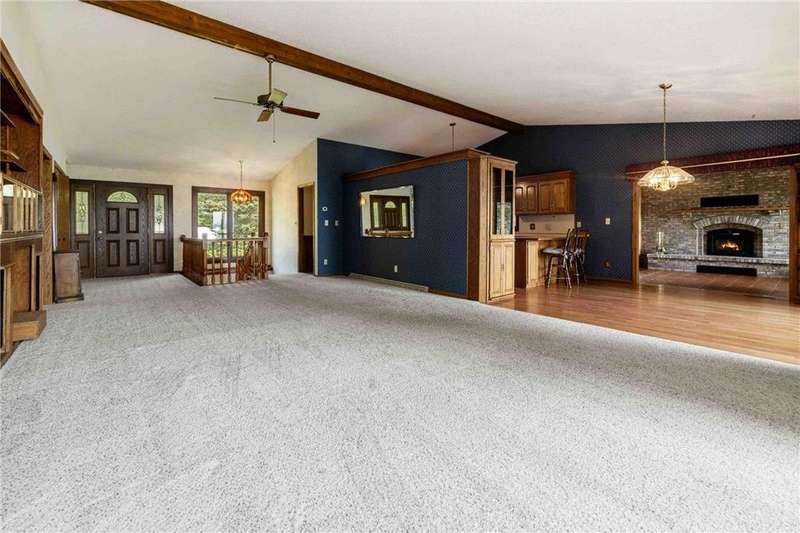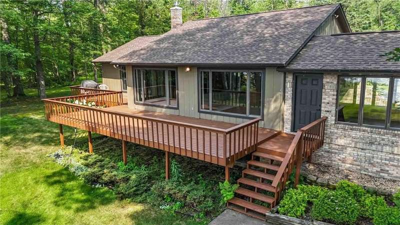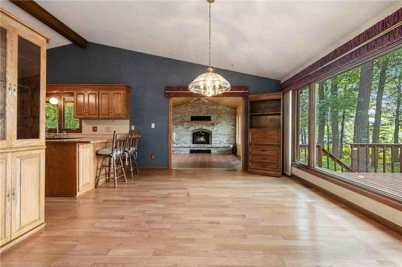 Discover a rare opportunity to own this private, meticulously maintained lake home on the shores of Rock Lake, McGregor MN. With 8.8± acres of wooded beauty and over 335± feet of shoreline, this retreat offers breathtaking views, endless space, and unmatched peace. When you drive into the property take your time and meander through the winding flower garden paths or enjoy the fenced-in vegetable garden with a heated greenhouse. Don’t forget to relax on the huge deck. The property also includes a pole barn with a heated workshop (wood or gas), a whole-home generator for added peace of mind, and two accesses to the property. When you step inside you will find on the main level a huge master suite with a full jack and jill bathroom, a ½ bath, an open-concept kitchen and dining area, living room and a cozy four-season sunroom, with gas fireplace—all flooded with natural light and overlooking the lake. Downstairs you will find a second living room with a gas fireplace, a large bedroom, a second non-conforming bedroom (no closet), spacious laundry room with a ¾ bath and plenty of storage. Whether you're looking for a quiet escape or a home base for lake adventures, this is the kind of place that stays in your heart and is ready for its next chapter.