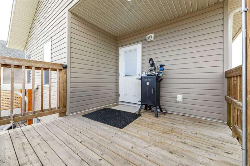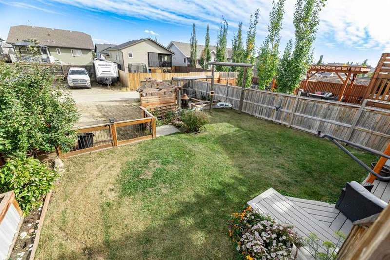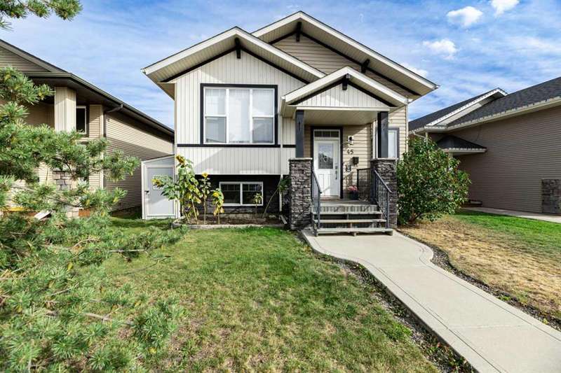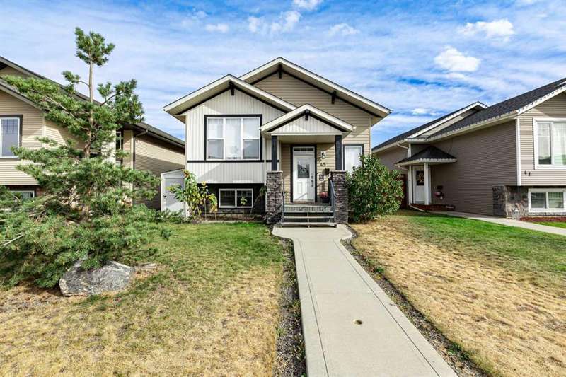 This inviting bilevel home is the perfect blend of function and location! Offering 4 bedrooms, 2 full bathrooms (including a private 4 piece ensuite in the primary), and an open floor plan designed for modern living, it checks all the boxes. Kitchen has a garden door leading to the East facing backyard. Warm and inviting, with a mix of laminate flooring and carpet. The full basement (with just the ceiling that awaits your finishing touch) provides a spacious family area plus a rough-in for an additional bathroom, giving you room to grow. Step outside to the fully fenced yard, with an upper and lower deck ,landscaped and ready for summer fun with the kids or family pets, even adequate space for garden beds with rear parking for 2 vehicles.There is even a possibility for RV parking or building a detached garage. Ideally situated close to the new school, nearby parks, and local amenities, while keeping your commute simple with quick access to Hwy 2A and Hwy 2. A wonderful home in a family-friendly location awaits you and your family!