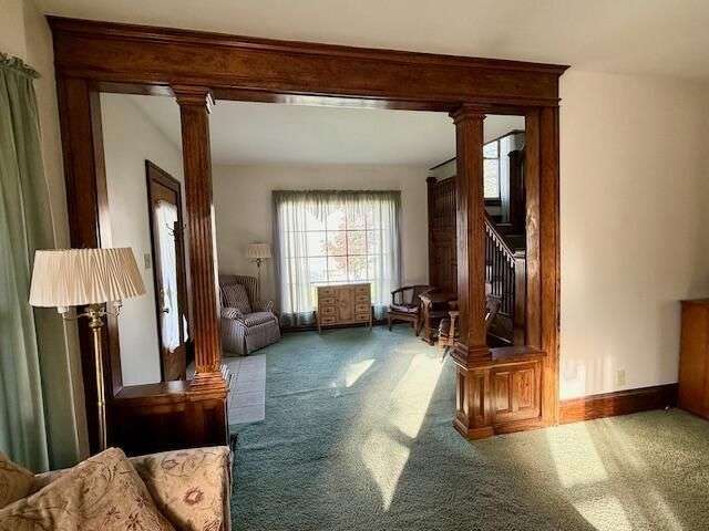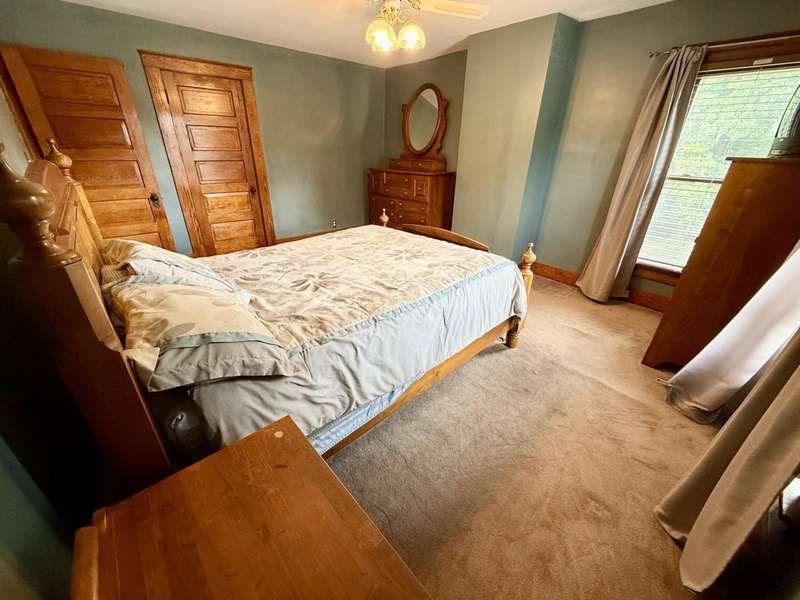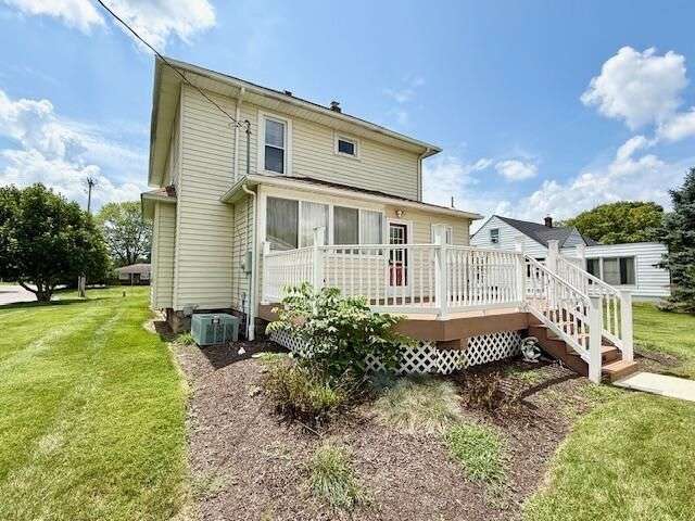 Back on the market, removed all wallpaper and freshly painted by professional with all updated colors. Charming 2 Story 3 bedroom 1.5 bath home. Almost 1 acre within the city, backs up to woods feels like country., on dead end short street. Beautiful natural woodwork! Updated kitchen, full bath with tub and walk in shower dual sinks. Updated half bath. Windows are newer. Family room has beautiful wood pocket doors, window seat and built in china cabinet. Living room has beautiful windows, wood burning stove. 2 bedrooms have walk in closets. Some hardwood flooring under carpets. Natural gas forced furnace new 2013. Roof 2023 complete tear off. Walk up attic (many possibilities). Oversized 2 car plus garage. Enjoy the Front porch and trek deck in rear yard. Very usable basement with new drain installed and exterior downspout drainage lines replaced in 2010. Youll love touring this home with so much character, owned for many years.