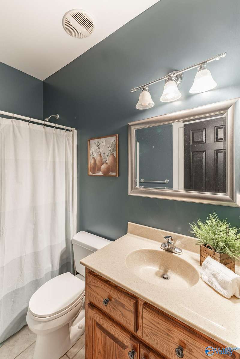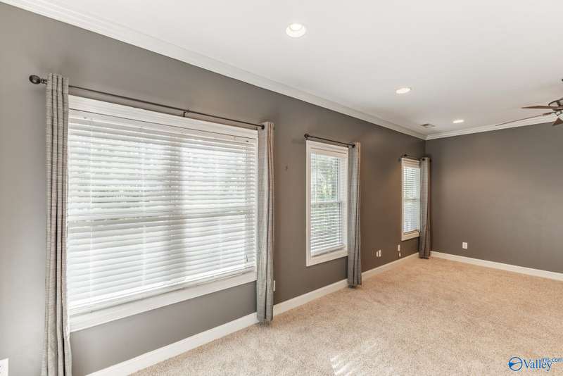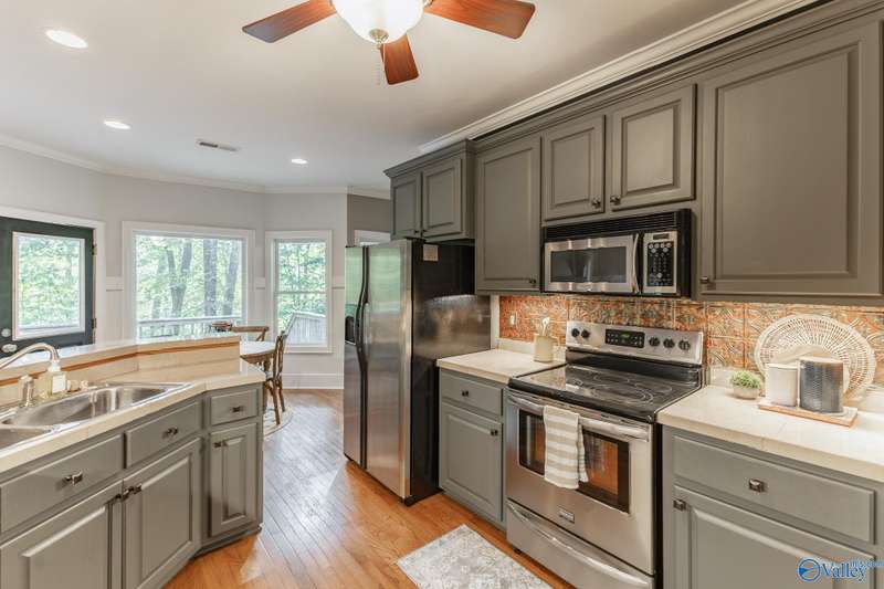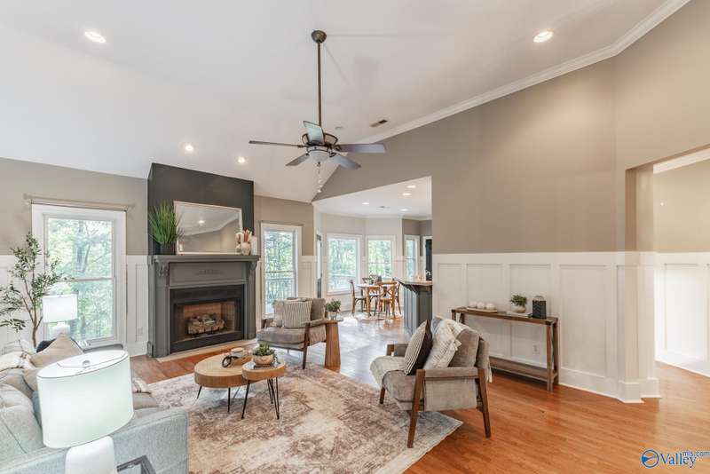 Spacious 4-bedroom, 4-bath home w/ a walkout basement on a private treed lot in highly desirable Elkmont Rural Village! Main level offers large living areas with a gas fireplace, formal dining, breakfast nook, pantry, and elegant wainscoting, complemented by oversized windows that flood main areas with natural light. The lower level features a built-in bar, entertainment space, office, and exercise room. Step outside to a deck overlooking serene greenery, perfect for entertaining or relaxing. Enjoy walking, hiking, and horse trails, tennis and pickleball courts, playgrounds, and a pavilion, NO HOA, providing a quiet, active lifestyle with unmatched access to nature & scenic surroundings.