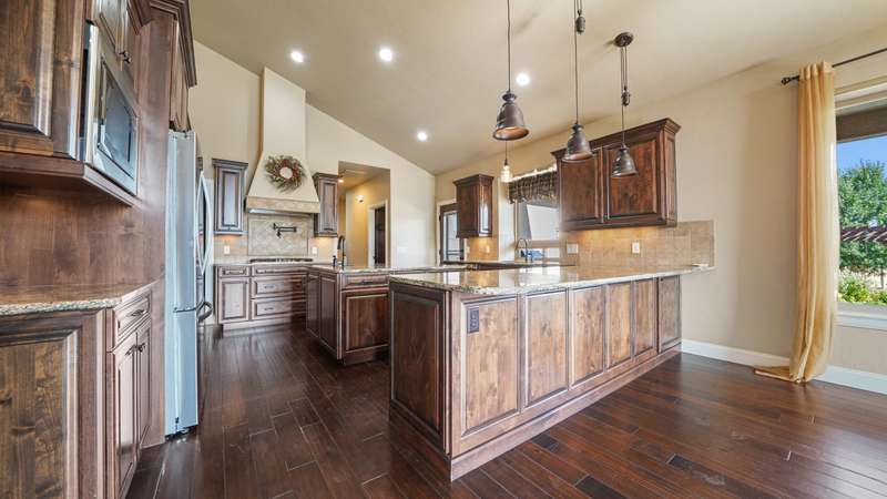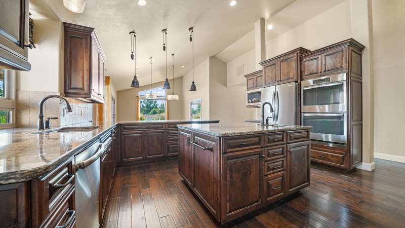 This extraordinary property offers a living experience unparalleled. Meticulously landscaped on 1.53 AC with majestic views and privacy. The kitchen is in the heart of the home with custom cabinets, gorgeous granite counters, upgraded appliances, huge walk in pantry for your extras. Custom pergola, covered patio, fire pit, outdoor speakers, and again views. A true must see!