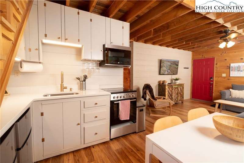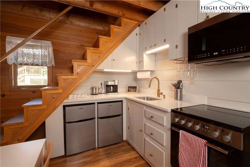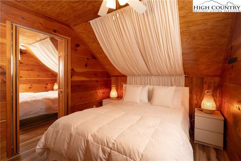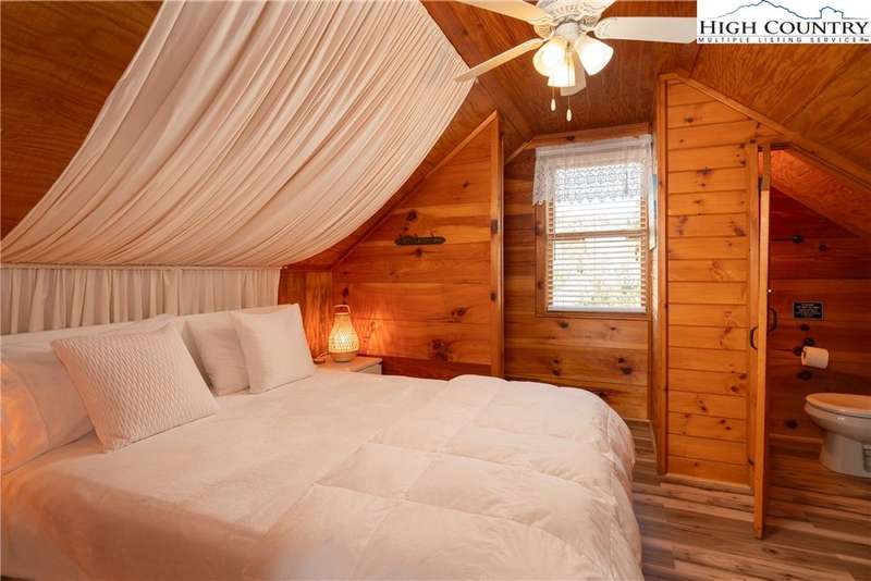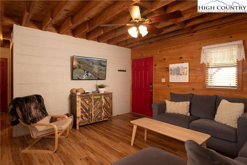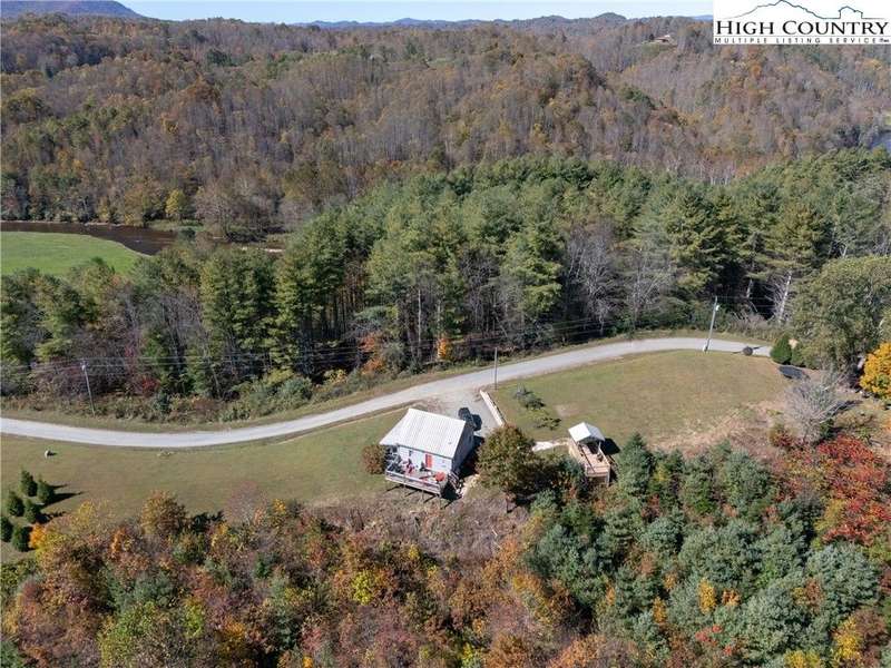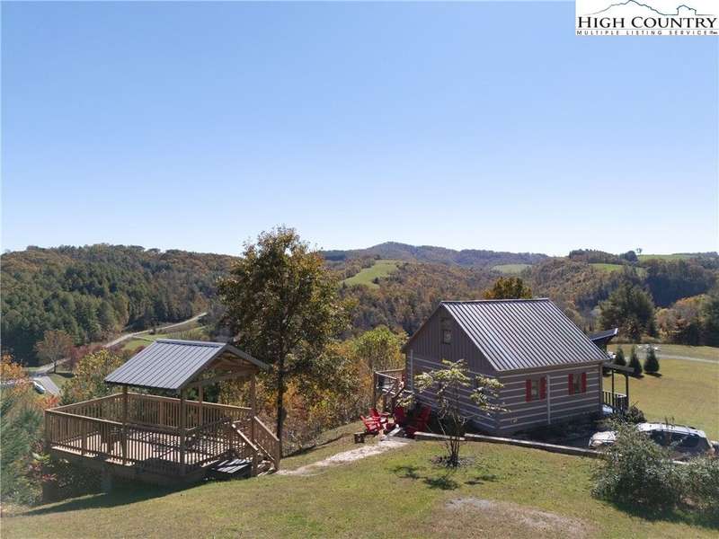 This sparkling Blue Ridge mountain cabin set on 2+ acres is ready to move in! Complete with furnishings inside and out, linens, and a fully stocked kitchen you'll just need to pack a bag! Perched on a ridge overlooking the New River, it boasts long and short range rolling mountain views. Enjoy sunsets and sunrises from multiple outdoor spaces including a large deck, front porch with swing and elevated gazebo overlooking the river. Don't forget the fire pit area for toasty nights by the fire stargazing and making mountain memories. On the main level, the home features an open concept living room with kitchen and dining area, primary bedroom, and full bath with laundry. The second floor features two sleeping areas and half bath. The home has been decorated with a simple, modern touch to let the details of the wood walls and beams shine. The New river is just a short 1/4 mile drive away for kayaking, canoeing, and fishing. Grayson Highlands State Park is just a short drive away for a hike along the Appalachian Trail as are many other great hiking spots in the West Jefferson/Ashe County area. The home has been a successful AirBNB and a new owner could continue with those rentals to bring in extra income. The lot is even large enough that you could add an additional home should you choose. Don't miss this opportunity to own your mountain getaway!
