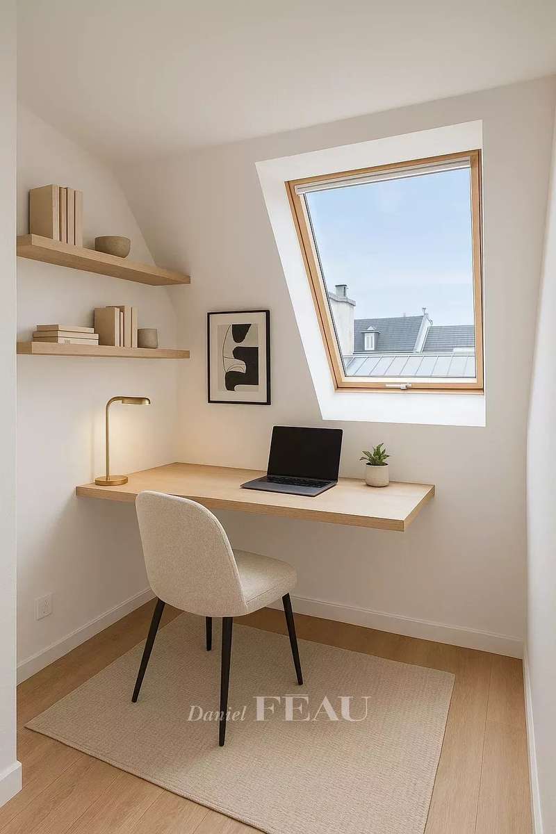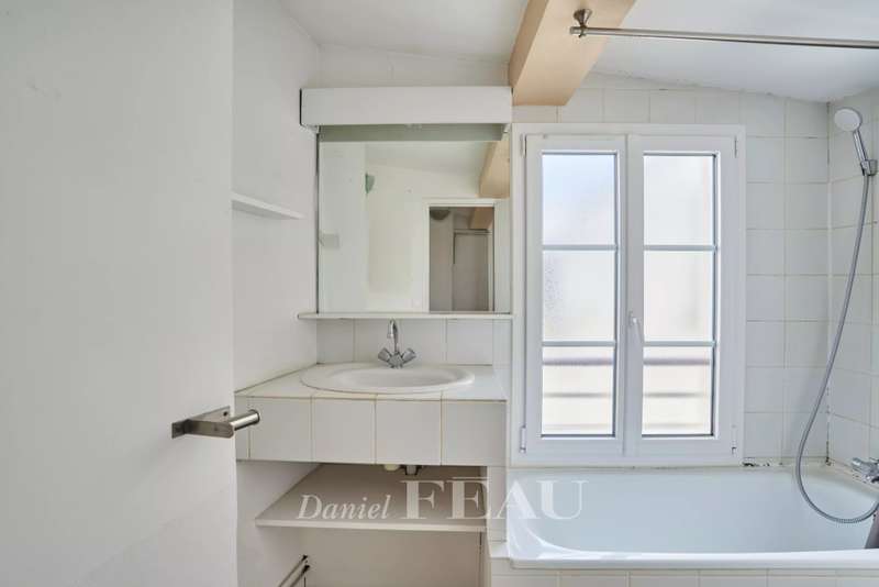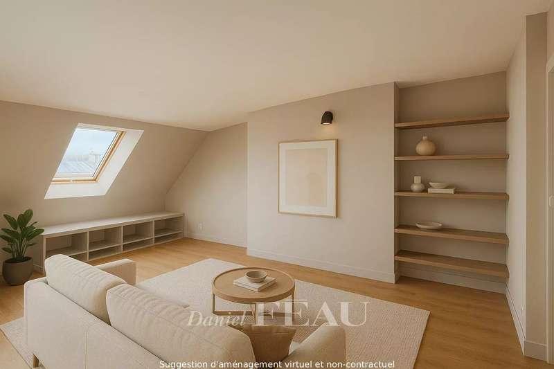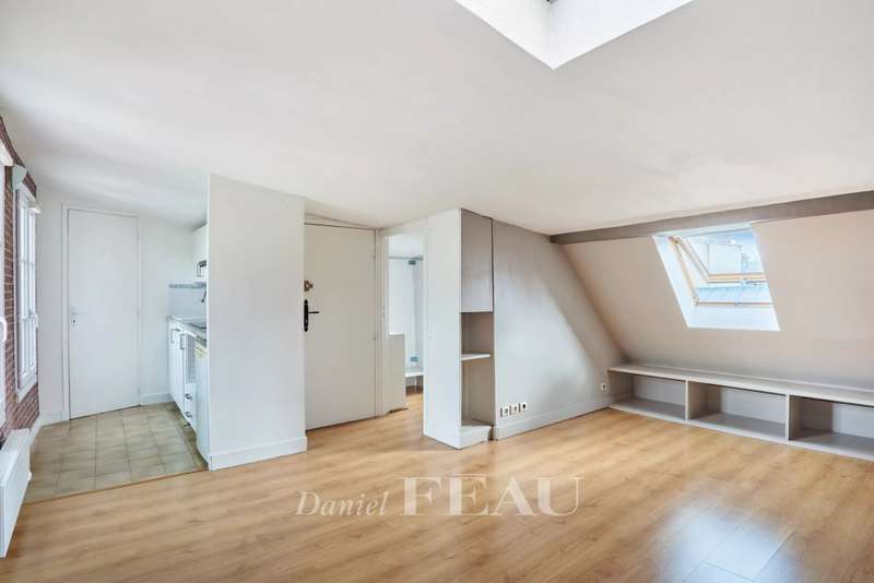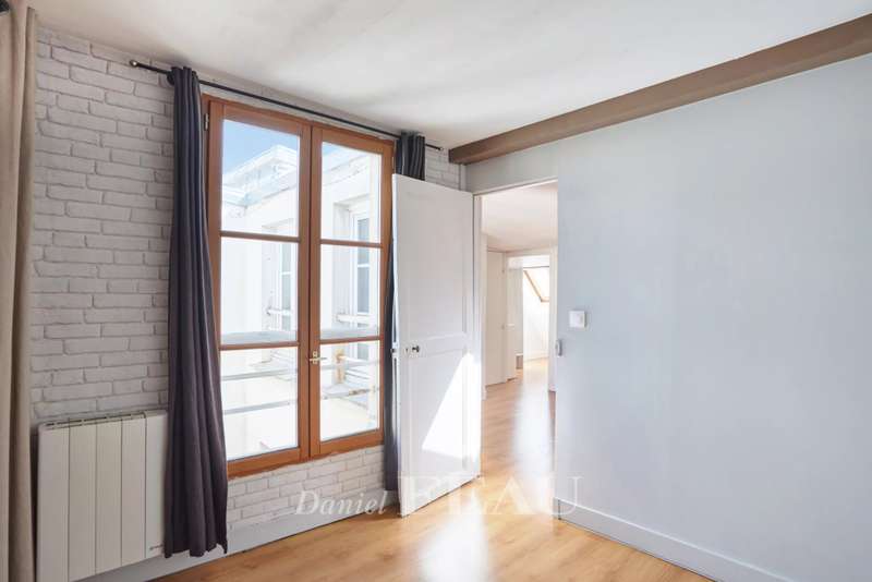 **Translation:** Rue du Pré aux Clercs, in a period building with recently renovated common areas, on the sixth and top floor with elevator access, a bright, quiet, and sunny apartment measuring 30.69 sqm under the Carrez law (40.90 sqm total floor area). It includes: a spacious dual-aspect living room (east/west), an open-plan kitchen, one bedroom, a separate walk-in closet or study, a laundry area, ample storage, and a bathroom with toilet. Sold with a cellar. Roof insulation already completed; energy performance rating can be improved.