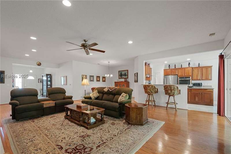 Spacious & Serene, 3 bedroom/2bath Wisteria has been reduced and is now offered at an unbelievable price of $524,900! This home is located in the amenity rich, 55+ Sun City community. This home offers the perfect blend of open concept living to host family and friends or a lovely private retreat. The spacious floor plan flows seamlessly from the living room, with a cozy fireplace, into the eat in kitchen with stainless steel appliances, which includes a gas cooktop and a double oven. The oversized sun room extends your living space and creates the ultimate spot for morning coffee, casual dining or evenings of relaxation, while overlooking the peaceful wooded backdrop seeing nature at its best. This home has a clean stucco report, HVAC in 2015 and is move in ready! A short drive to Hilton Head beaches, shopping, Savannah and many restaurants. Come and take a look at this special home.