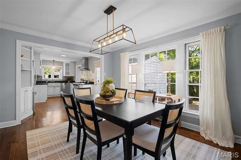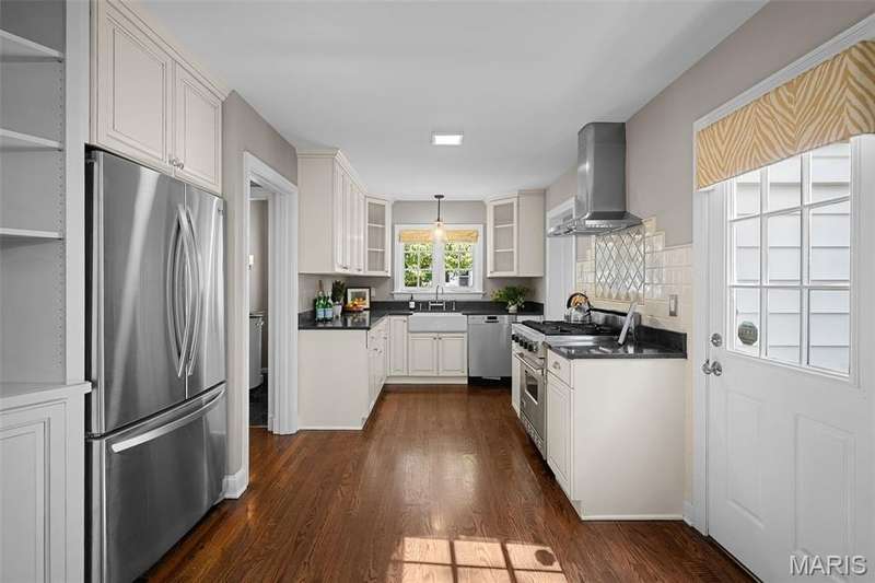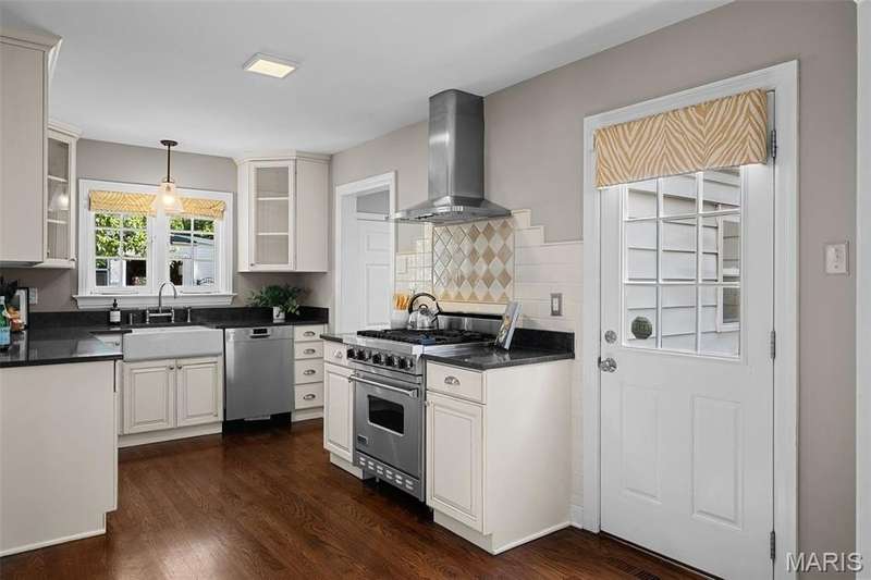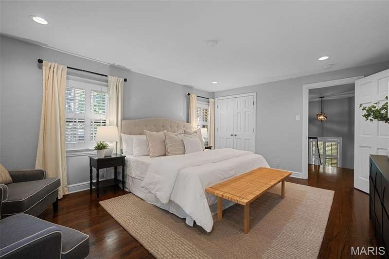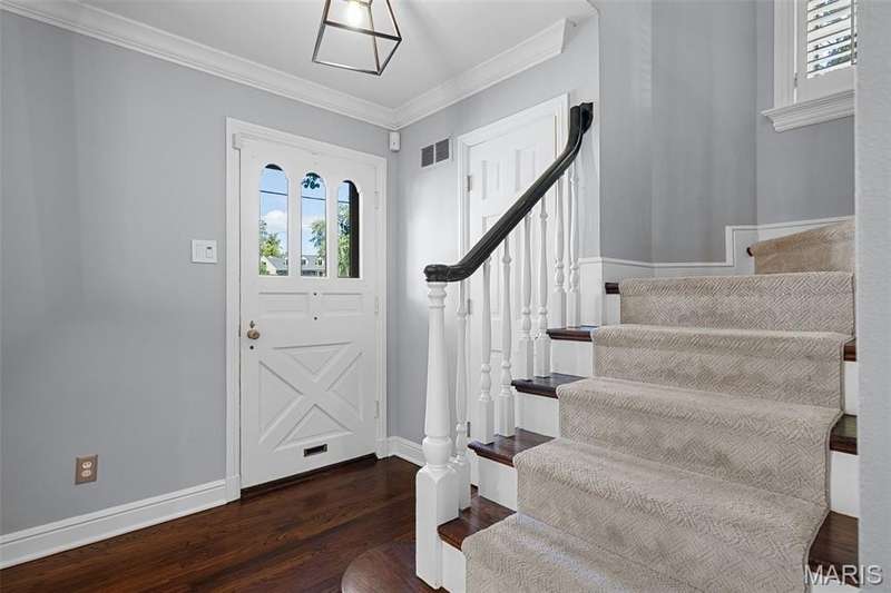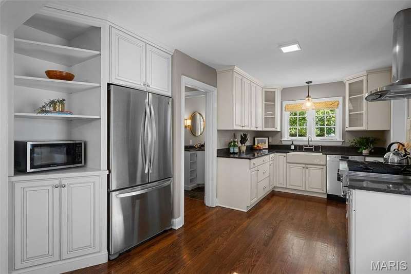 Back on the market- Buyer denied financing Welcome to this stylish brick home nestled on one of the Hottest street in Kirkwood! Upon entering you will notice the beautiful hardwood floors through out the home. On the main floor there is an updated Kitchen that opens to dining room, office/den, and living room, This floor plan is so inviting and makes great place to entertain. Main floor laundry/ mudroom walks out to 1 car attached garage. There is a beautiful staircase that leads to up to a new marble bathroom & a spacious primary bedroom. One of the two additional bedrooms upstairs features a high-end custom closet but could be easily converted back to a bedroom. Down to lower level you will find a finished area for extra living space and ample storage space too! Private backyard with two patios completes this perfect package! New Roof 2025