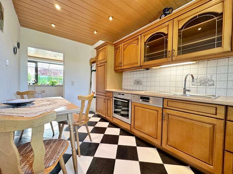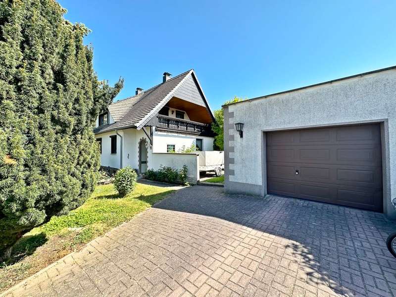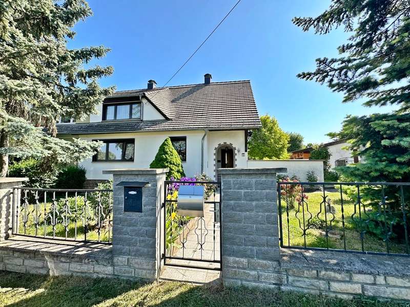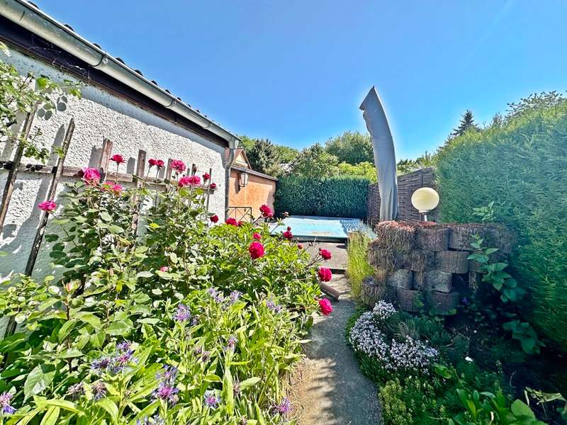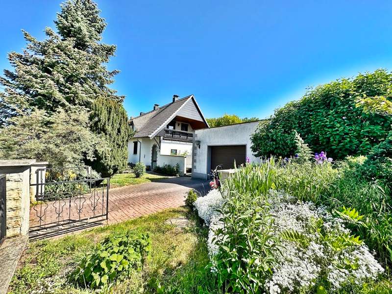 For sale is a semi-detached house of the well-known type EW 65 B/D, built in 1986, a real classic with a contemporary floor plan. In the house are available to you on approx. 150 m² of living space the following rooms: In the attic 3 bedrooms, 1 room with access to a large covered balcony and access to the attic and a bathroom, which is in need of modernization. On the first floor, in addition to the vestibule, there is a guest toilet, a large bright hallway, the kitchen, which is handed over with fitted kitchen and a large living room with access to the terrace. In the basement are utility rooms, storage areas and a hobby room, the former garage under the terrace was converted into a spacious workshop due to the steep access. The house has a well thought-out structure and offers ideal living space for families with children. On the property there is a large garage with adjacent workshop and storage room. Between the buildings is a visually screened area with an in-ground pool. Overall, the property is very nicely landscaped and has little visibility. All in all, a beautiful house that wants to be filled with new life. The house can be occupied immediately if necessary, offers plenty of space and still has expansion reserves in the attic. This property is ideal for families who want to live in a quiet and relaxing environment. The spacious house offers everything you need for comfortable living. If we have aroused your interest, we look forward to your inquiries and are available to arrange viewing appointments.