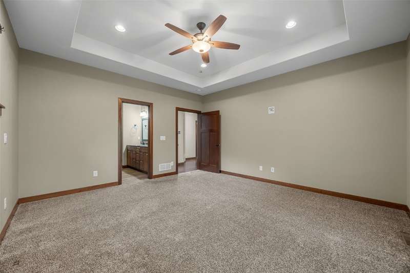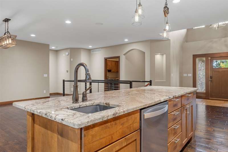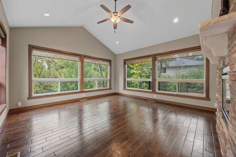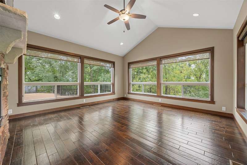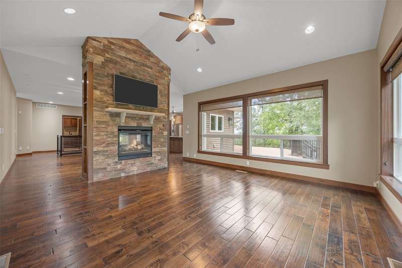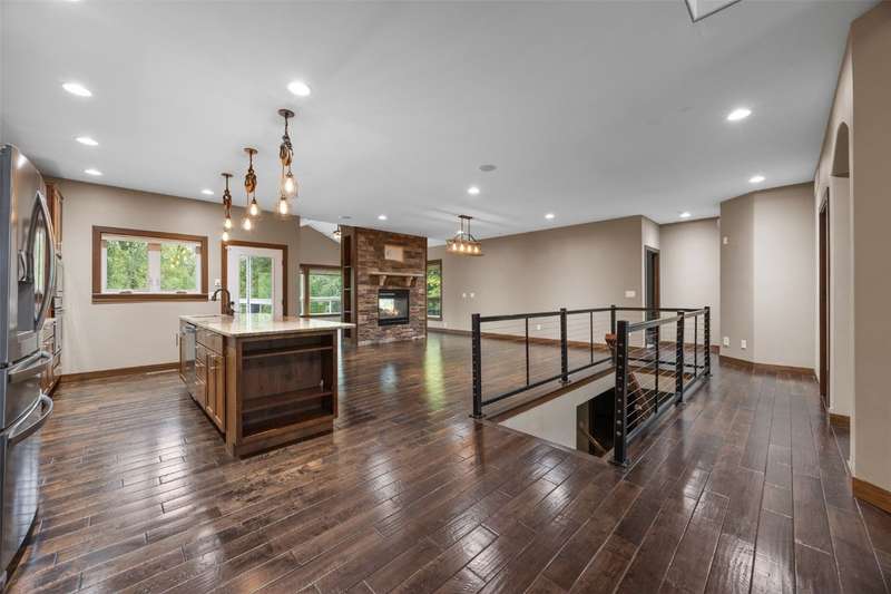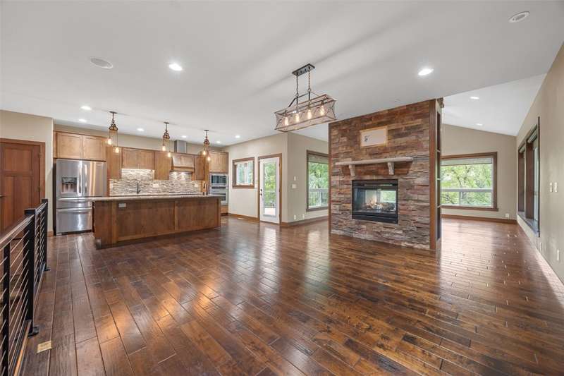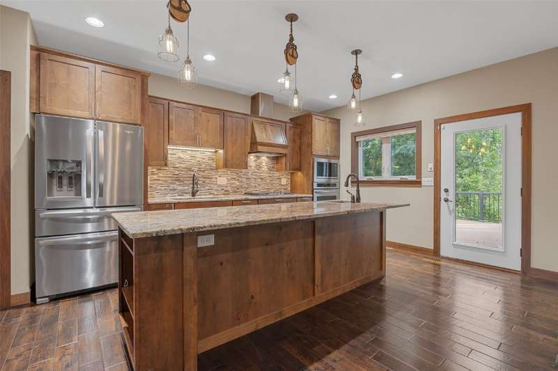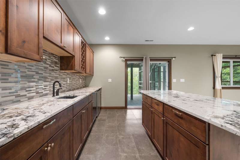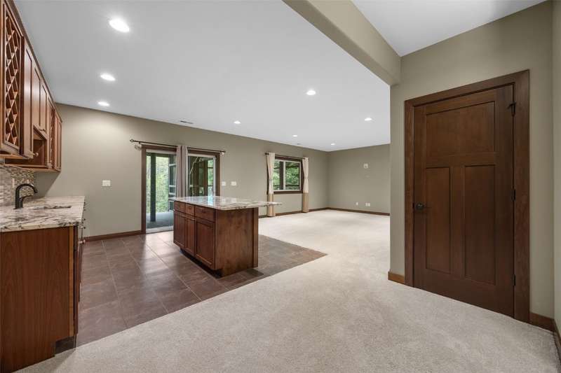 Quality-Built Ranch on Wooded Lot Near Xavier. Beautifully constructed and nestled on a private wooded lot near Xavier, this 5-bedroom, 3-full-bath ranch offers exceptional craftsmanship and thoughtful design throughout. The open floor plan features a stunning great room/sunroom with floor-to-ceiling windows, a two-sided fireplace, and high ceilings that create a warm and inviting atmosphere. The kitchen showcases quality wood cabinetry and flows seamlessly into the spacious dining and living areas. The main-floor primary suite includes a large walk-in closet and a custom-tiled shower. Additional highlights include solid wood doors, a large main-floor laundry room with abundant storage, and an oversized 3-stall garage complete with water and floor drains. The walkout lower level is designed for entertaining, with a theater area, family room, large bar, and generous storage space. Outdoor living is equally impressive with a screened porch, maintenance-free deck with steps to the backyard, and peaceful wooded privacy. This is a rare opportunity to own a meticulously maintained home combining comfort, quality, and serenity—all in a convenient location near schools, parks, and amenities. Plumbed for Central Vac only. Buyer to verify square footage