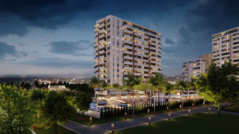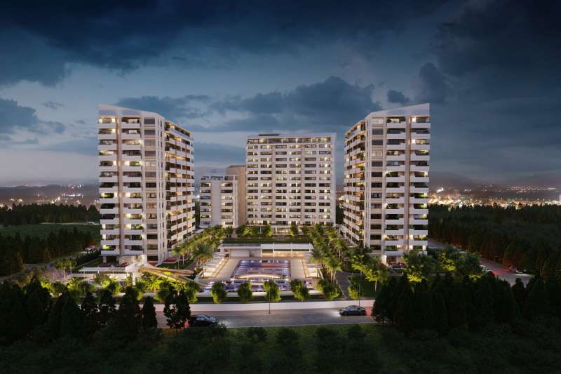 The comprehensive project with 4 blocks and 336 apartments on 16.434 sqm. The project also includes a 56-room hotel. Residents can benefit from the facilities of the hotel at a discount. In addition, the project has an outdoor swimming pool, aquapark, Turkish bath, sauna, gym, karaoke room, barbecue area, camellias, digital game room, indoor-outdoor parking area, on-site walking paths, playground, generator, elevator, 24/7 security, and security cameras.