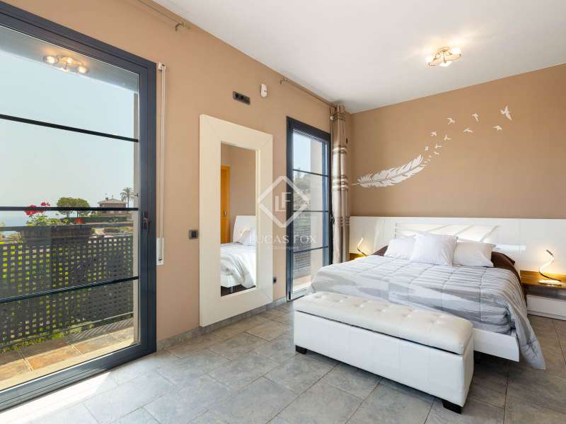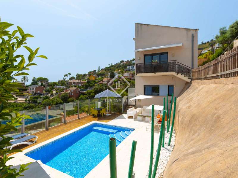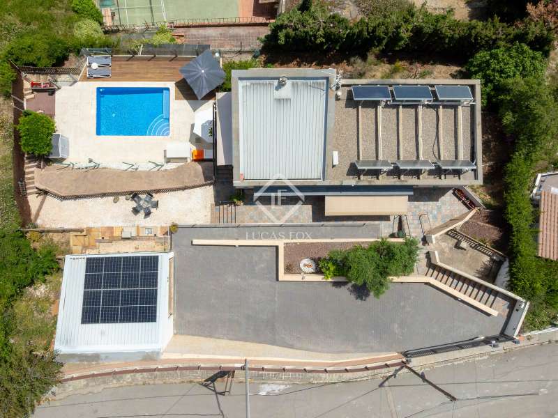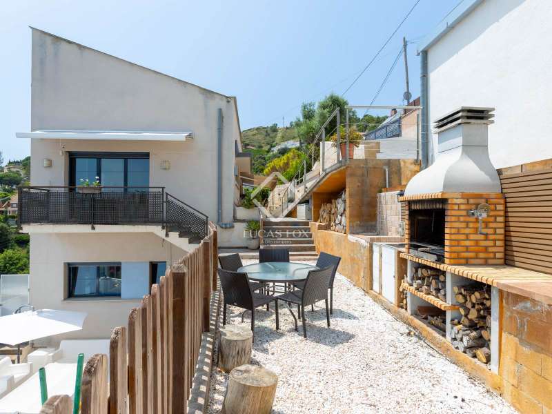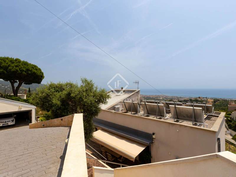 This comfortable property is located in a prime location in the Maresme region, in the charming town of Alella. This area is known for its excellent climate, winemaking tradition, gastronomy, and relaxed lifestyle, just minutes from Barcelona. The area has all the necessary amenities , including national and international schools, as well as the El Masnou marina. There is a nearby bus stop for quick and easy travel. The area also offers numerous opportunities for all kinds of sports year-round. The house was built in 2004 and is in excellent condition. It enjoys stunning panoramic views of the sea and is southerly aspect, ensuring abundant natural light throughout the day. The property is equipped with solar panels for both electricity and independent pool heating, and has a rainwater tank, allowing for significant savings on monthly utility bills. All rooms enjoy sea views and access to a terrace. The living room stands out for its double-height ceilings and cozy fireplace, which provides direct access to the pool area. The house has a master suite and three double bedrooms. The heating is provided by underfloor heating and air conditioning via ducts. The entrance is also accessible for guests with reduced mobility, and there is a space designed for the installation of a lift. The garden offers several terraces and relaxation areas , including a barbecue area with a summer kitchen. The pool enjoys spectacular views and complete privacy, as the adjoining plot is a protected green area. The exterior carpentry is made of aluminum with double glazing, which guarantees good thermal and acoustic insulation.