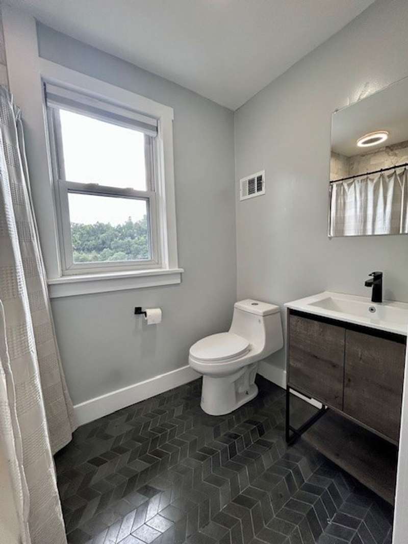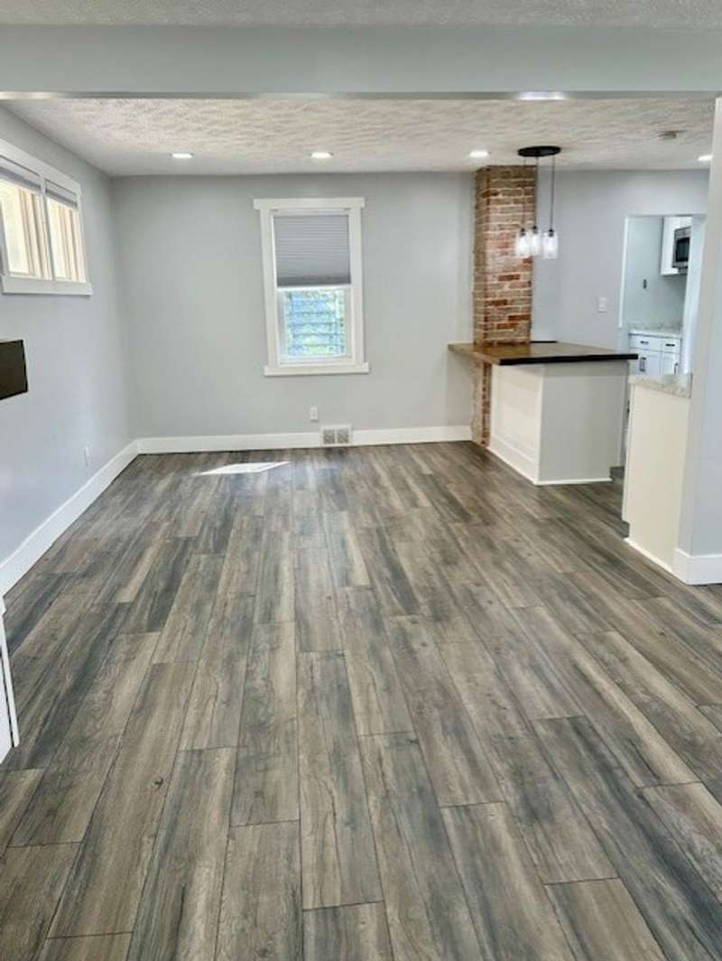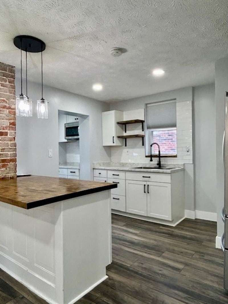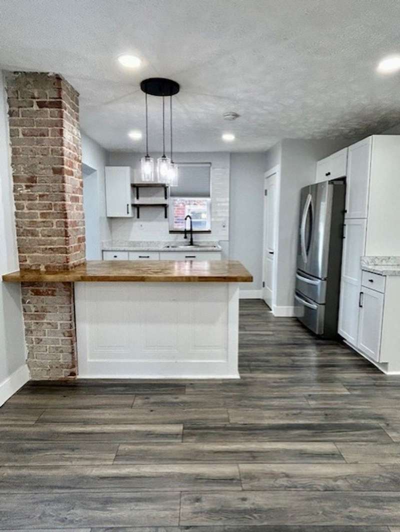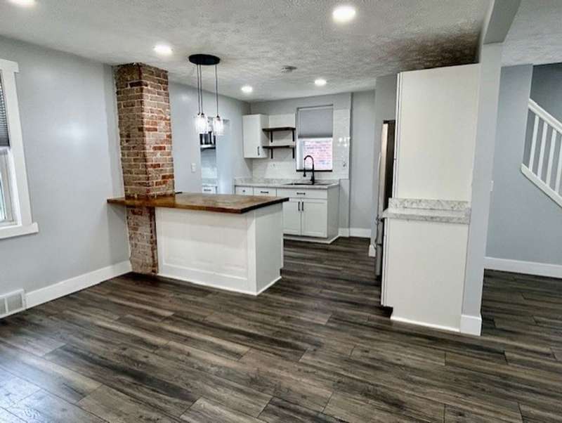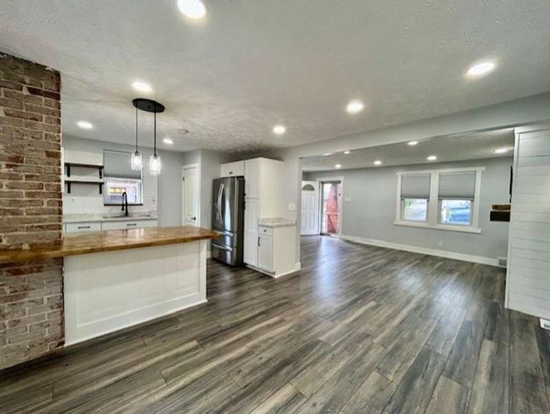 Location, Location! This move in ready home features open concept living, lots of natural light and recessed lighting throughout. Beautiful exposed brick in the kitchen and bedrooms. The full bathroom features a tile shower and tile herringbone style flooring. Enjoy morning coffee or a quiet evening on the large front porch; the flat backyard is truly a blank canvas just waiting for fall evenings! The large walk-out basement has the opportunity to be a finished entertaining space AND features two extra storage rooms. Easy access to Rt 51, 376 and downtown Pittsburgh. Be moved in and ready for the 2025 holiday season!
