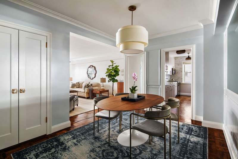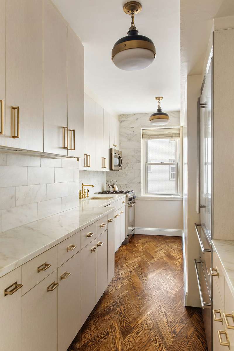 With great attention to detail, this one bedroom, one bathroom home with powder room has been stylishly renovated to create a serenely spacious residence that exudes a quiet luxury. The entrance foyer, dining area, kitchen, and living room flow seamlessly into each other with common elements that connect these rooms and areas. These details include new crown moldings, baseboards, and solid wood doors. Both the powder room and primary bath feature new marble flooring, vanities, and toilets. The windowed kitchen, with its custom designed hardwood floors, has new stainless steel appliances. Each closet in this detailed home has been custom designed by California Closets.