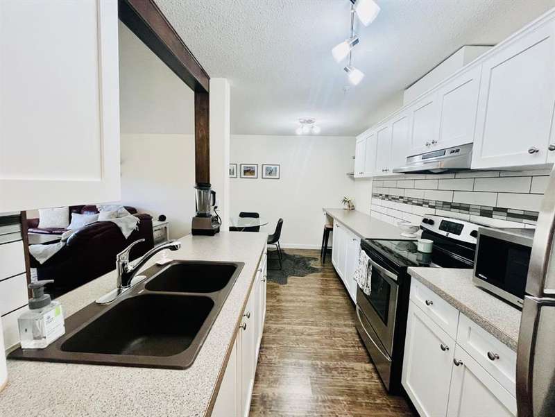 Welcome to your new beautifully renovated home in a great west side location! This is the fully renovated carefree apartment lifestyle living you have been looking for. The inviting openness of the renovations in this floor plan bring light and function to this great room space. The kitchen cabinetry extends the entire wall bringing extra function and storage with plenty of room to set up a coffee bar, have your stand mixer and sourdough starter always at the ready. Newer appliances all around including full size stunning stacked red washer and dryer in your own unit. The ground floor rear of building offers a great sunny private patio space in the landscaped park setting around this building. The building is professionally managed, updated including plumbing and patio upgrades underway. This unit has had the updates, and the sellers have prepaid the building assessment for the upgrades, so you have nothing to worry about. An assigned safe bright parking space included but also a second parking space leased for a low annual fee if you need 2 spaces. Move in and enjoy this well-kept, well-managed, well-loved, west side living close to shopping, schools and the university, bus stop right out front, parks and bike paths. So much to enjoy – don’t miss out!