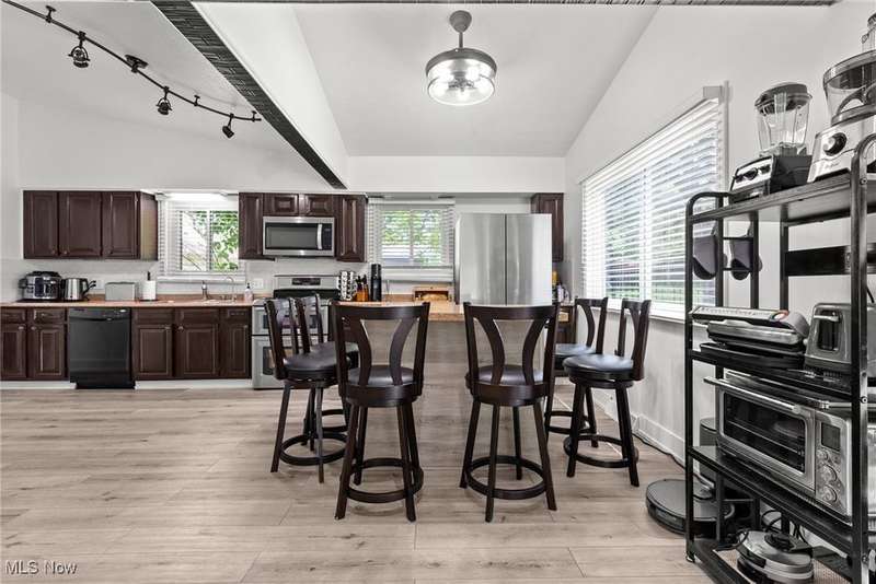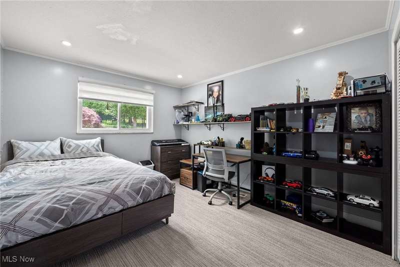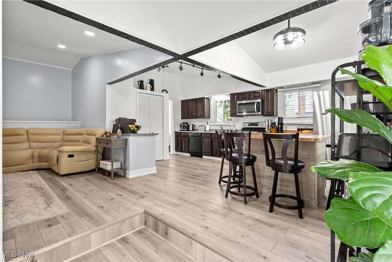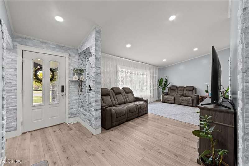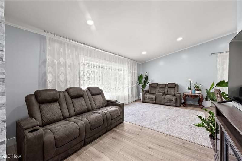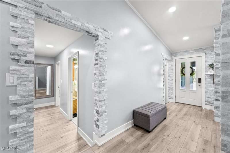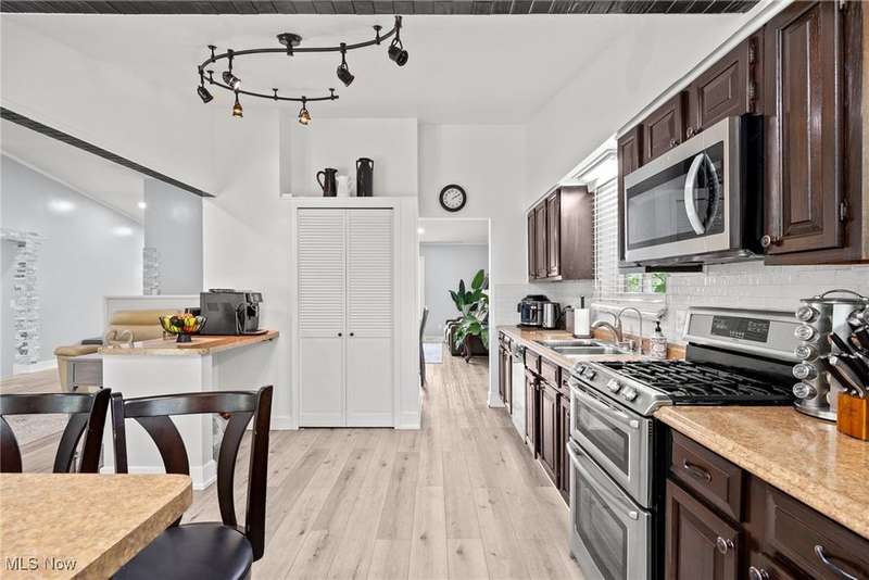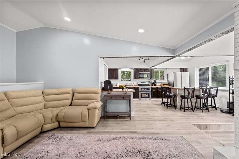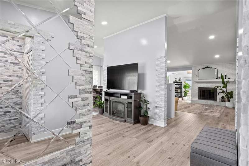 Absolutely stunning and beautifully remodeled unique ranch nestled on a quiet street in desirable location! Modern architectural details boast fancy stone-finished doorways, high ceilings, trendy high-end vinyl flooring, modern recessed lighting and more! Incredible open floor plan! The Foyer opens to Sun-filled Living and Dining w/ recessed lighting and big picturesque bay window; flows to the comfortable Family room with romantic gas fireplace. Huge chef's dream Kitchen with elegant custom cabinetry, plenty of counter space, designer backsplash, morning bar and island, stainless-steel appliances to stay! Charming Sunroom nook to relax and read your favorite book or use as an office. The first level also features 3 generously sized bedrooms, including the Master Suite. You will be pleased to find another luxury Master Suite on the lower level! Three remodeled Full Baths! Laundry area and plenty of storage space on the lower level. The nature's paradise, peaceful very private fully fenced backyard is a rare find, and is secluded in flowering bushes, trees and features a small pond creating a zen-like outdoor tucked away oasis! Enjoy your summers on the private back patio - a perfect venue for family and friends gatherings. Excellent Location just minutes to all shopping, dining, parks and schools! Move-in today and???????????????????????????????? enjoy!