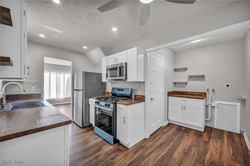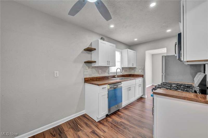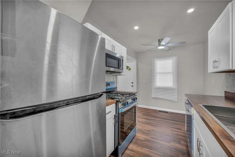 Come and see this desirable 4-bedroom Cape Cod home on Cleveland's west side showcasing stunning modern updates throughout. Step inside to discover all-new vinyl flooring that flows seamlessly through the home, new carpet in the bedrooms, freshly painted walls, and recessed lighting that brightens every room. The beautifully renovated kitchen features all-new cabinets, butcher block countertops, floating shelves, a stylish new backsplash, and brand-new stainless steel appliances. The convenient main level includes two bedrooms, a washer and dryer hookup, and the upper level offers two additional bedrooms for flexible living options. The updated bathroom boasts a quartz countertop, luxury-style tile, and an LED mirror for a sleek, modern finish. Enjoy comfort year-round with new ceiling fans throughout, vinyl siding, vinyl windows, and a two-car garage that complete this move-in-ready home. Nestled in a desirable west-side neighborhood near shopping, restaurants, and major highways, this home combines style, comfort, and convenience all in one perfect package.