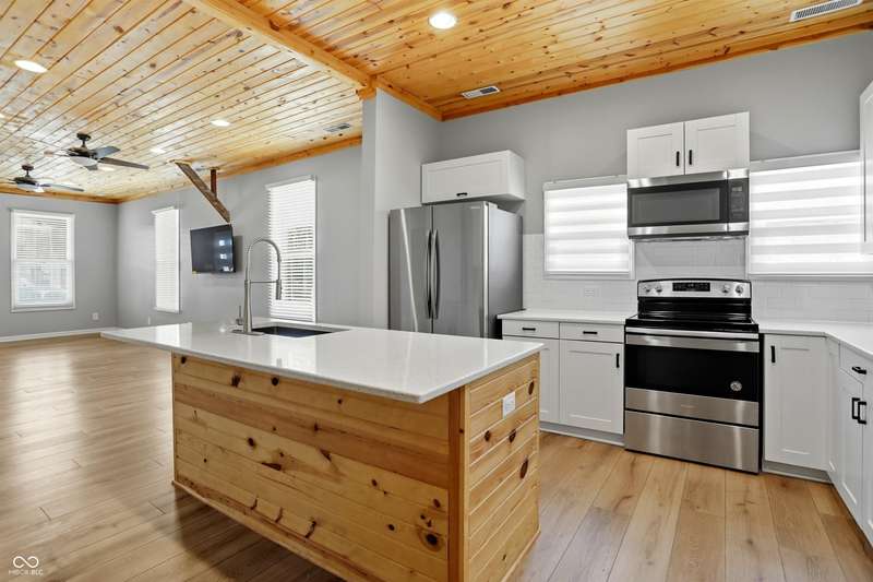 Location! Location, Location! Discover this beautifully remodeled 3-bedroom, 2-bath home located in the heart of downtown Westfield. Featuring modern updates throughout, this home blends classic charm with contemporary style. Enjoy an open-concept living area and the perfect balance of comfort and convenience. The home includes a master suite along with two additional bedrooms that can be used as a kids' room, nursery, office, or more. Step outside to a large backyard ideal for entertaining, relaxing, or enjoying the outdoors. The foundation/crawl space has been upgraded to meet a structural engineer's recommendations and fully encapsulated, providing long-term durability and peace of mind. You're just a short walk from the up-and-coming Grand Junction Plaza and Park Street's vibrant restaurants, shops, and entertainment. Enjoy the front porch perfect for morning coffee and relaxing evenings. Come inside and find an open floor plan that welcomes a large living area. The updated kitchen has a center island, stainless steel appliances, and modern cabinets. Both bathrooms have brand new vanities, fixtures, shower doors, mirrors, and lighting for a fresh look. The laundry room has a washer/dryer combo, shelves, cabinets, and hanging space. New blinds and shades are throughout, too! The oversized detached garage is ideal for a workshop or hobby space.The spacious yard with a privacy fence, is just shy of 1/3 acre and adds lots of outdoor living with its hardscape patio and generous deck featuring new cable railings. Gather around the firepit and find even more open outdoor space perfect for gardening or a playset. New updates include landscaping, 2-coat paint throughout the interior, kitchen pulls, blinds/shades, bedroom light fixtures, LVT flooring in both secondary bedrooms, exterior porch paint, front-porch light fixtures, mailbox, TV, exterior door handles and locks. Professional crawlspace encapsulation, too. This home is truly a wonderful place to call your own