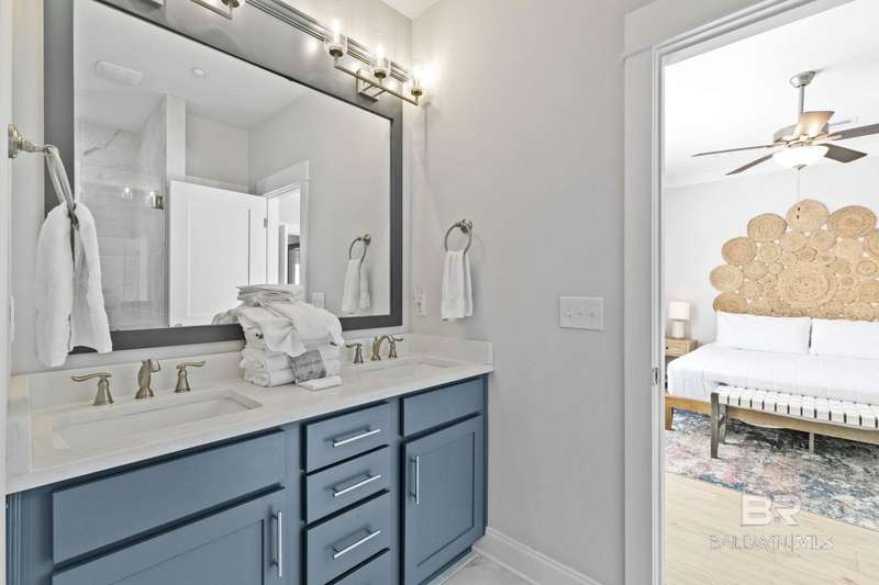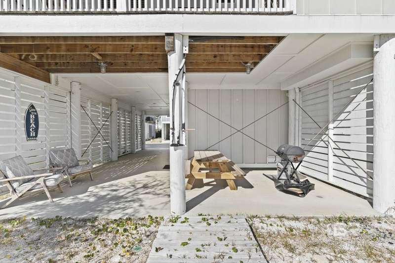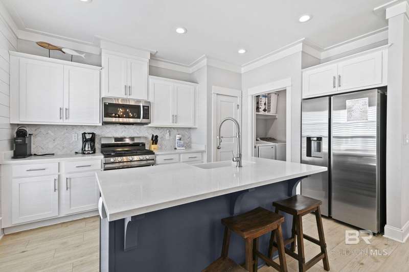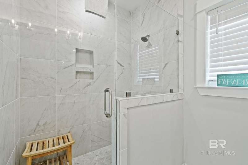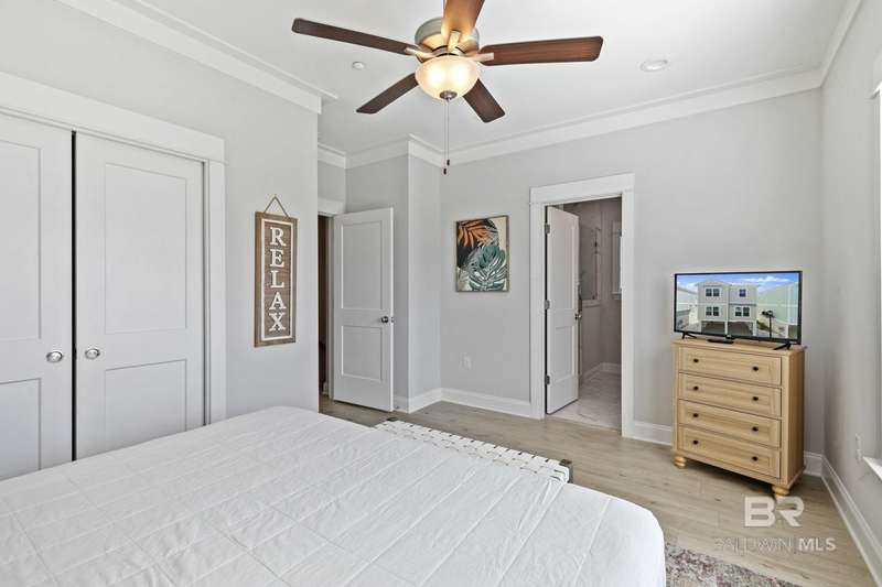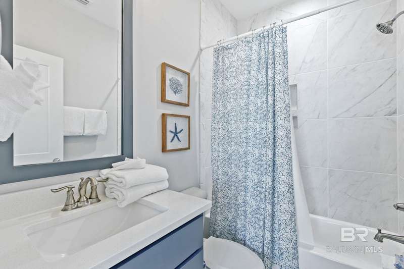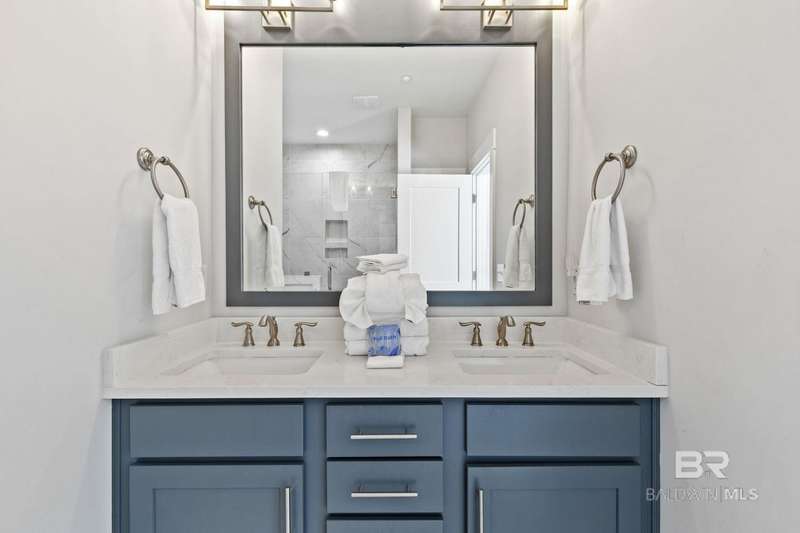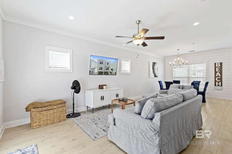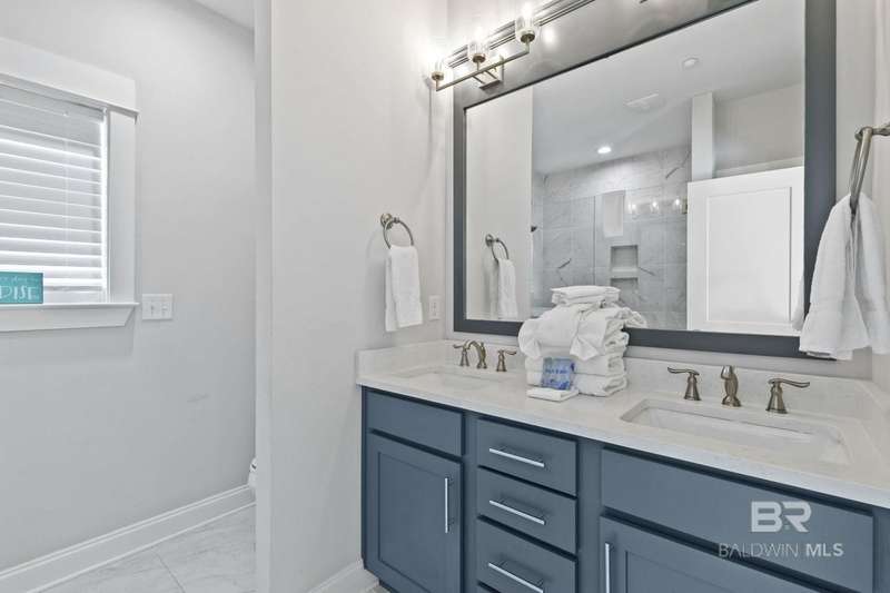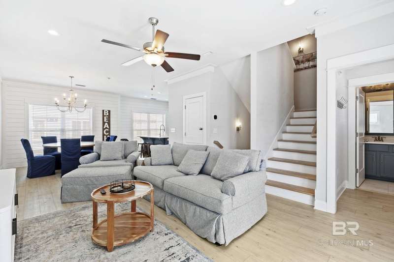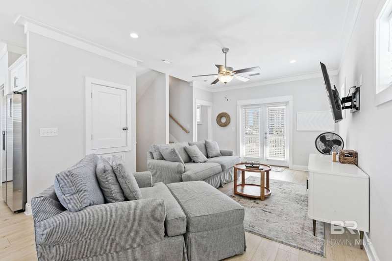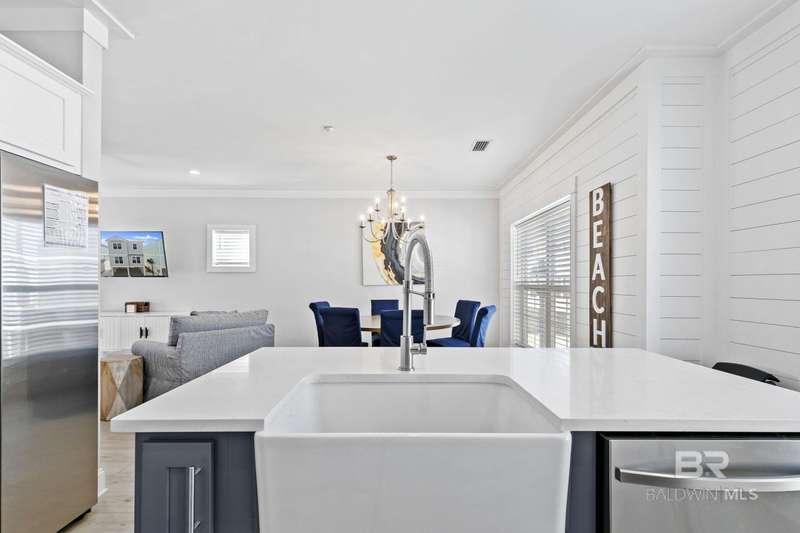 Turnkey home in the heart of Orange Beach, this exquisite fully furnished 3 BR, 4 BA coastal home offers the ultimate combination of luxury and convenience, making it an ideal investment for vacation rentals or your personal beach retreat. Every bedroom features its own ensuite bathroom, providing privacy and comfort for guests, with an additional fourth bathroom adding even more convenience. The open-concept kitchen is a chef's dream, boasting Carrara quartz countertops, an apron-front sink, a five-burner gas range, and upgraded painted cabinetry?all seamlessly integrated into the living area to create an entertainer's paradise. The home's interior design is further elevated by EVP flooring in the main living areas and master bedroom, stylish tile finishes, and modern plumbing fixtures, all spread across a spacious 1,507 square feet of luxurious beachside living.The Summer Salt community enhances the property's appeal with its incredible amenities and unbeatable location. Just steps away from beach access, this home provides effortless entry to the pristine sands and azure waters of Orange Beach. Residents and guests can enjoy the zero-entry resort-style pool, community fire pit, putting green, and entertaining cabana. Nature lovers will appreciate the tranquil surroundings and wildlife, while those seeking activity will find a plethora of local dining, shopping, and entertainment options within walking distance. Built to Fortified Gold standards, the home is both stylish and durable, offering peace of mind to owners and renters alike.Practicality meets luxury with thoughtful features such as a Rinnai tankless water heater, outdoor shower, and ample outdoor storage. The home includes three dedicated parking spaces under the house, with additional guest spots for visitors. A sprawling 18-foot-wide porch provides the perfect setting to relax and take in the coastal breeze. Short-term rentals are permitted. Buyer to verify all information during due diligence.