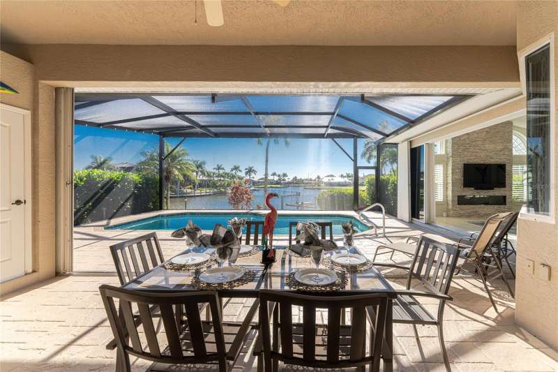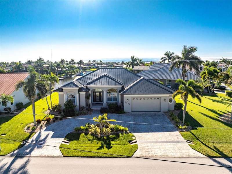 Welcome to 1353 Thrasher Dr, a waterfront paradise situated in the heart of Punta Gorda, FL. This beautiful 2,429 sq ft. single-family home with 3 bedrooms, 2.5 baths boasts sailboat access to Charlotte Harbor, with no bridges to navigate and less than 15 mins access to open water. Enjoy the breathtaking long canal view through panoramic screens, the perfect backdrop for your evenings. The heart of the home, the kitchen, was updated in 2025 and features quartz countertops, premium stainless steel appliances, ample cabinets, a dry bar, and a cohesive flow into the family room for easy entertainment. You'll also appreciate the new metal roof and gutters (2024), refined lighting, and ceiling fans spread throughout the home. Experience the tranquility of the primary bedroom, offering direct access through French doors to the pool and lanai. With the waterfront view from the primary bedroom, morning coffees couldn't get better. The primary bath features dual split vanities for abundant space., The home also boasts of a large laundry room with added storage for your convenience. This home is packed with upscale features including a new electric fireplace, a Sonos sound system in all common areas and lanai, a Kinetico whole house water softener, and accordion hurricane shutters throughout. The property shines with new 2025 landscaping adding perfect curb appeal to your new home. Situated less than 10 mins from downtown Punta Gorda and Fishermen's Village and 15 mins from Punta Gorda airport and I-75. Enjoy your weekends exploring Punta Gorda's charming downtown boutiques, shops, weekly farmer's markets, and savor fine dining at local restaurants. The southwest-facing lanai guarantees stunning sunsets, the perfect ending to your everyday. Start living your dream Florida lifestyle in this impressive home. Schedule a showing today or contact us for more information. You don't want to miss this opportunity! All Dimensions and Specifications are deemed to be accurate and should be verified to the Buyer or Buyer's Agent satisfaction.