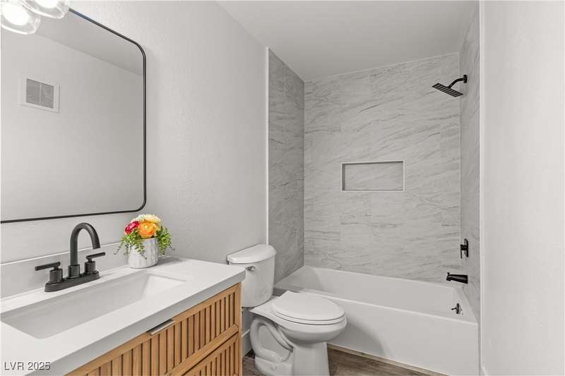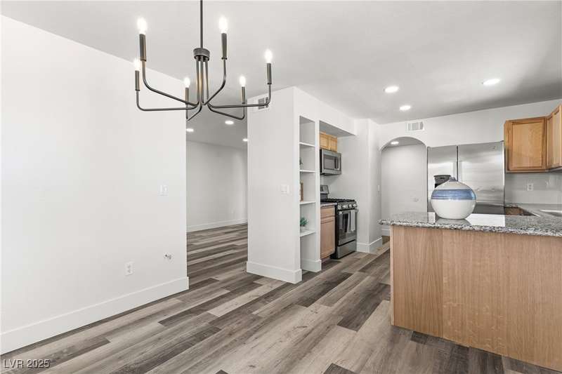 Fully renovated 3BD/2BA condo with a rare floorplan in a community near Summerlin and Desert Shores! This beautifully updated home features designer bathrooms and vanities, granite countertops, new cabinets, and luxury vinyl plank flooring throughout. The open and functional layout offers excellent flow and comfort. Enjoy a private balcony with serene views of the community pool. Conveniently located near the community entrance and just steps from the pool, spa, and clubhouse. Close to shopping, dining, parks, and with easy freeway access to US-95 and Summerlin Parkway. Move-in ready and perfectly situated in a desirable Las Vegas location!