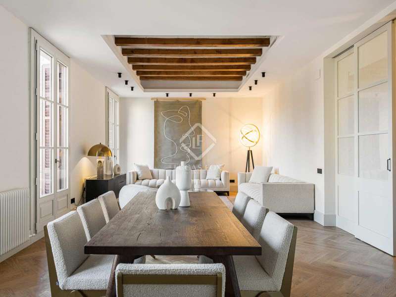 This apartment is located in one of the most sought-after areas in the centre of Barcelona, Passeig Sant Joan, surrounded by restaurants, services and entertainment venues. In addition, it is located a few metres from the Arc de Triomf and the Ciutadella Park. This 183 m² home is renovated and furnished, in a restored 1920 building, with only two residences per floor. The apartment is on the second floor and benefits from exterior access to a balcony with excellent views of Passeig Sant Joan. Likewise, its layout offers a dual aspect and therefore, abundant light enters all the rooms. The property offers a layout with a living-dining room and kitchen, 3 bedrooms and 4 bathrooms. Finally, this apartment has a 7 m² terrace. It is an excellent opportunity to acquire an apartment in a building with refurbished communal areas, such as the lift, stairs and installations, as well as offering a community area on the roof of the building. This home is perfect as a primary residence or as a holiday home.