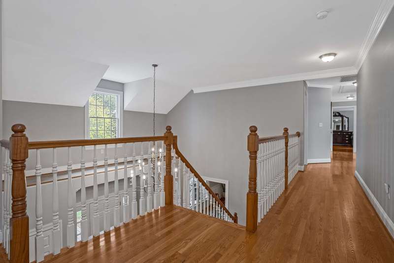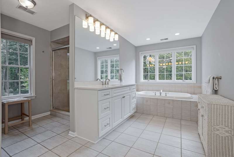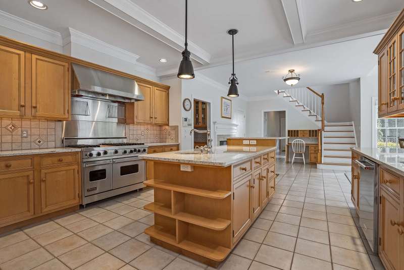 Privately sited on a quiet cul-de-sac, this striking stone and cedar residence, complemented by a three-car garage, is gracefully set on 5+ acres of manicured grounds surrounded by conservation land for lasting privacy. From the circular drive, the property unfolds to a backyard paradise with a saltwater pool, Tennessee sandstone patios, and deer fencing that preserves the landscaping's beauty. Inside, a two-story foyer opens to the formal dining and living rooms, enhanced by French doors and custom millwork. The expansive kitchen, breakfast room, and family room form the heart of the home, where walls of windows and a soaring fieldstone fireplace create warmth and connection to the outdoors. A mudroom with laundry, informal powder room, and back staircase ensure convenience. Upstairs, the primary suite offers a sitting area with gas fireplace, dual walk-in closets, and a spa-like bath. Two bedrooms share a Jack-and-Jill bath, with two more bedrooms and another full bath completing the level. The versatile lower level provides recreation space, a wine closet, half bath, storage, and direct walk-out access to the backyard. Backing to the 160-acre MacGregor Preserve with access to Chester's thousands of acres of parkland, hiking trails, equestrian facilities, and sports clubs, this location blends rural tranquility with commuter convenience, just minutes from farm stands, shopping, dining, award-winning schools, and Midtown Direct trains.