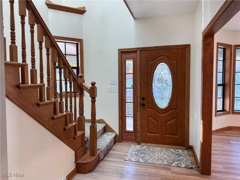 This 3-bedroom, 4-bathroom home is tucked back in a cul-de-sac, has been recently renovated & is a MUST SEE! With over 3000 sq. ft. of living space, located in Austintown LSD, has a private backyard AND a 4-car tandem garage...this one checks all the boxes! When you drive up, you'll notice a freshly painted cedar exterior, huge concrete covered wrap around front porch, and a newer roof. When walking in through the front door, you're greeted by a two-story foyer with oak staircase & chandelier. Off to the left is a large family room with bay window, fresh paint, new vinyl LVT floors, 9 ft. ceilings and 6-panel oak doors that run throughout the main level! A dining room leads into the renovated kitchen with black cabinets, gold accents, new countertops, large pantry space, appliances (2025) and a great view out to the fully fenced backyard. The kitchen opens up to the living room with sliding glass door, floor to ceiling stone fireplace, built-in bookcases & a wet bar with new beverage cooler! A half bathroom and and a first-floor laundry room with cabinets and new utility sink complete the main level. Off the laundry room is a huge 4-car tandem garage with two new garage door openers, newer garage doors, gas furnace (never used) & rear garage door! Upstairs has new LVT floors throughout the hallway, and new carpet in the bedrooms with a walk out balcony facing the front neighborhood! The common full bathroom has a new toilet, vanity, flooring and fixtures. The owner's suite has a walk-in closet, a gorgeous, remodeled bathroom with new soaking tub, tiled stand up shower, vanity, toilet, LVT flooring and fixtures. The basement has even more living space with a partially finished area with huge wet bar, cabinets, new vinyl flooring & a half bathroom that's already plumbed for a shower, new vanity, toilet & fixtures. Out back is a large multi-level deck, backyard lined with trees and a concrete patio as well as a new A/C unit! Don't miss out on this one!