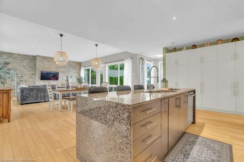This large bungalow offers almost 4000sq/ft of living space. 331 Northumberland St offers 3+2 bed, 4-bath home is located in the family-friendly community of Ayr. Situated in a vibrant neighbourhood renowned for schools and its community vibe, this spacious home offers an ideal setting for families to grow or for in-laws to share a peaceful lifestyle.This beautifully maintained home features luxury finishes.The main level boasts an open-concept design with floor-to-ceiling windows that flood with natural light and offer views of the rear patio.A focal fireplace wall adds a modern touch, perfect for relaxing and entertaining.Spacious bedrooms provide walk-in closet space and ample storage. The large master bedroom retreat includes a walk-in closet and a luxurious ensuite, providing a perfect sanctuary.Two additional main-level bedrooms share a convenient Jack and Jill bathroom,ideal for family.The main floor also features a convenient laundry area, along with a practical mudroom—perfect for kids’ backpacks and shoes.The chef’s kitchen is a true centerpiece, with ample counter space, a kitchen island great for those who love to cook.The seamless flow into the living and dining areas makes this space ideal for entertaining.The SOUND PROOFED basement offers fabulous in-law potential with additional kitchen,two bedrooms,and layout that can accommodate extended family, teens, or home office.A rear yard entrance provides access to the basement.The backyard retreat features a patio, a splash pool, a garden shed for storage, and landscaped fencing for privacy.The garage a handyman’s dream, with soaring ceilings for a car hoist—perfect for vehicle enthusiasts.Located close to shopping, schools, parks, and community amenities, this home offers the best of Ayr’s scenic waterways, historic charm, and heritage.Whether you’re seeking a family-friendly environment or a peaceful retreat, this property combines comfort, functionality, and community spirit in one exceptional package.