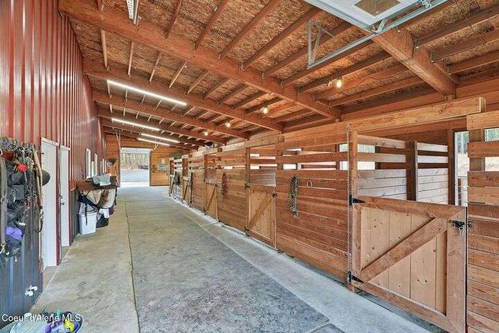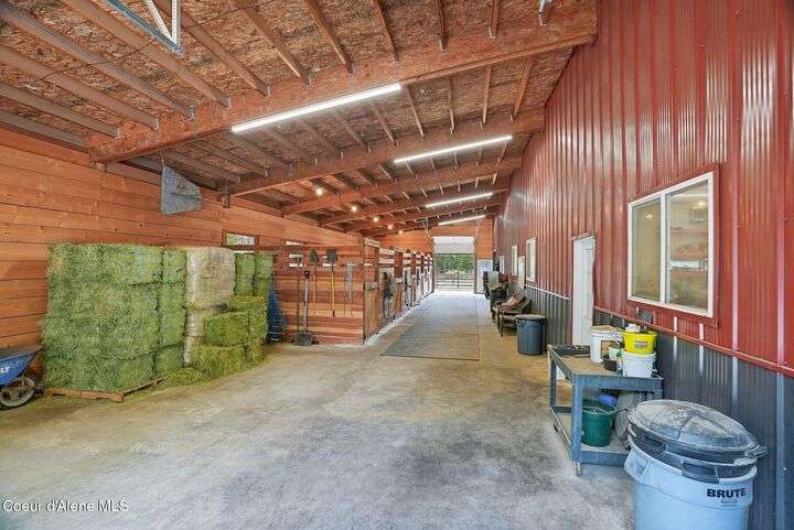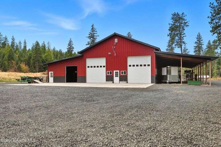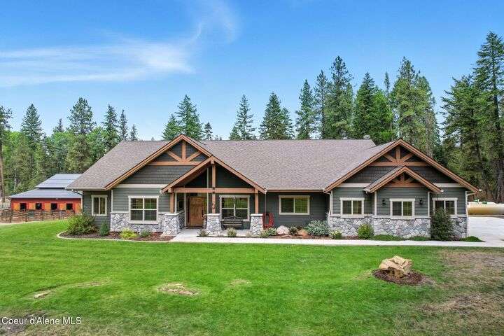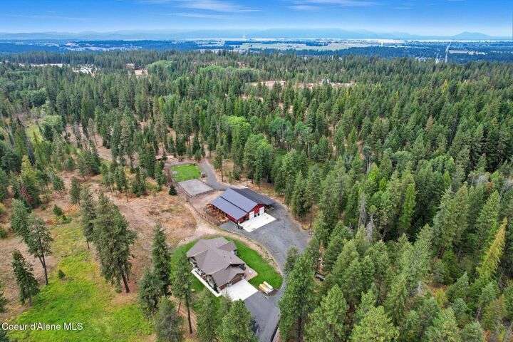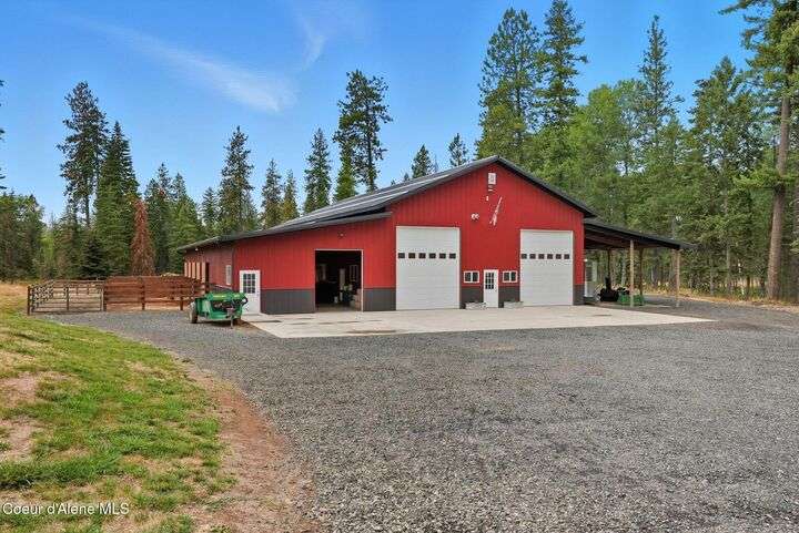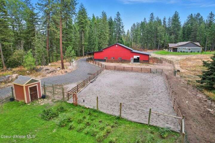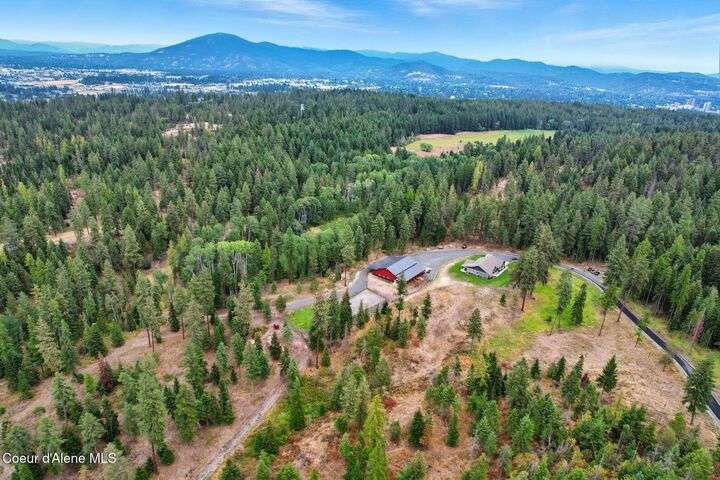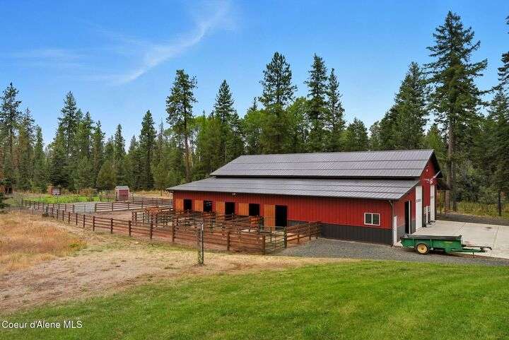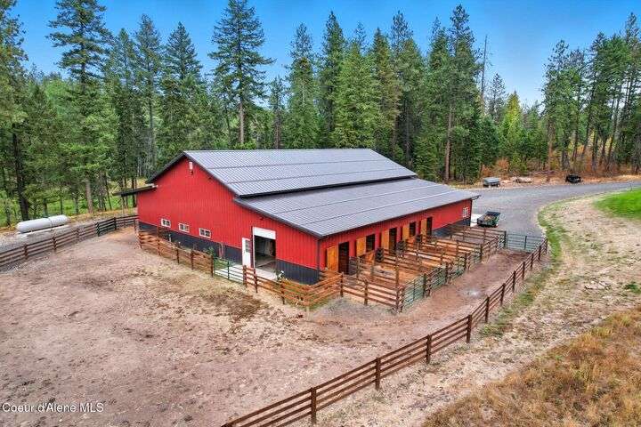 Just 5 MINUTES from downtown Coeur d'Alene and the Hagadone Marina, this remarkable 33+ ACRE ESTATE offers a rare blend of refined living and EQUESTRIAN excellence. Zoned for 2-acre lots yet designed with horses in mind, it's a property where luxury meets the ultimate equestrian lifestyle. The single-level custom home showcases fine craftsmanship throughout—featuring a gourmet kitchen, grand master suite, 2 additional private suites, a 4th bedroom, and a spacious 3-car garage. Designed for comfort and elegance, it serves as the perfect retreat after a day spent at the ranch. For horse enthusiasts, the property TRULY shines: an impressive 80'x88' barn/shop with 14' doors provides versatile space for stabling horses, storing hay and equipment, or accommodating oversized vehicles. The land is fully fenced and professionally parked out, offering multiple pastures, riding areas, and abundant room to expand with arenas, round pens, or additional barns. With no CCRs and bordering a 157-acre conservancy parcel, the estate delivers unmatched privacy and open space for riding. Practical amenities such as a high-producing 70+ GPM well, 400-amp service, automatic backup generator, pond, and asphalted drive enhance both daily function and long-term value. Whether envisioned as a private equestrian retreat, a working ranch, or a legacy estate for future generations, this beautiful property combines the freedom of acreage, the sophistication of a custom residence, and the unmatched convenience of being just minutes from town.