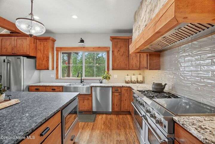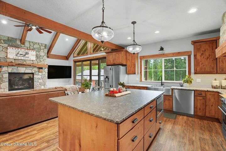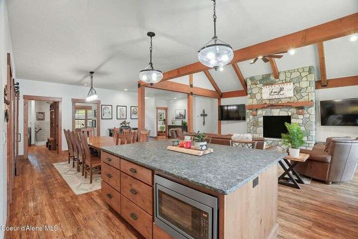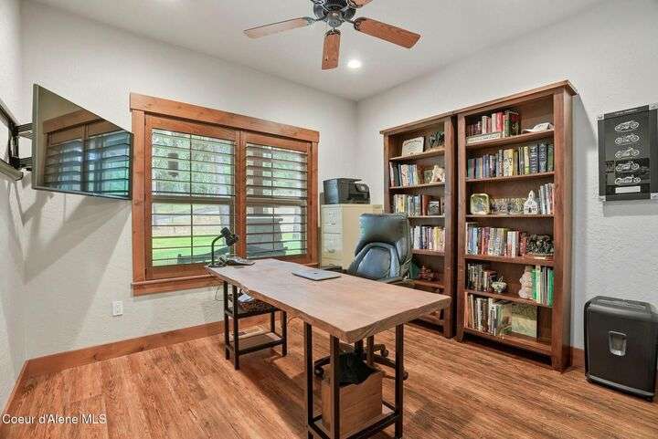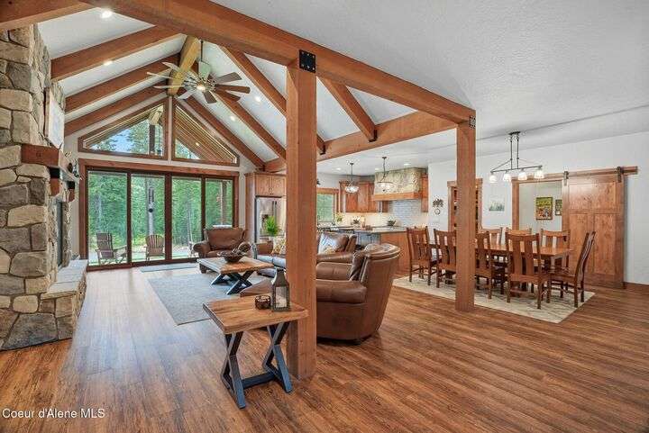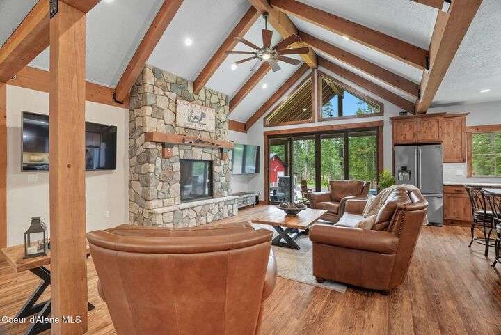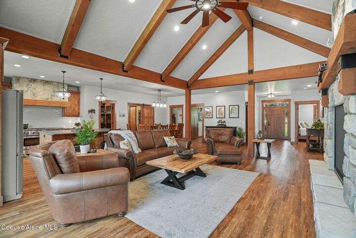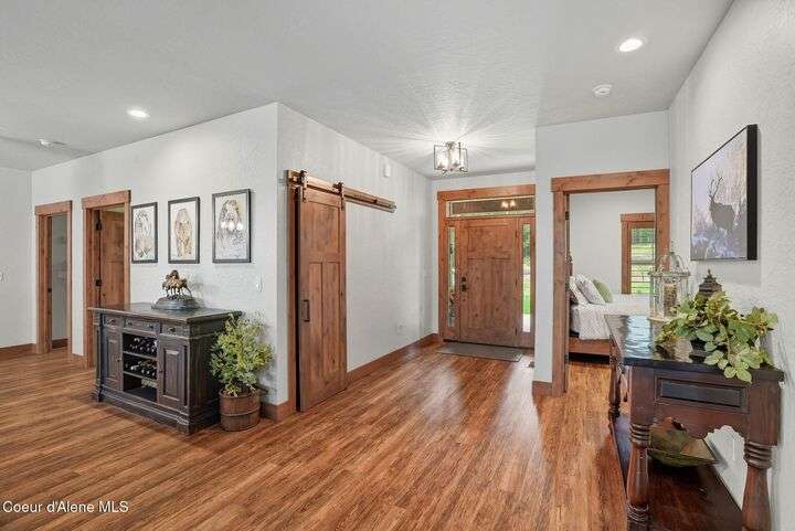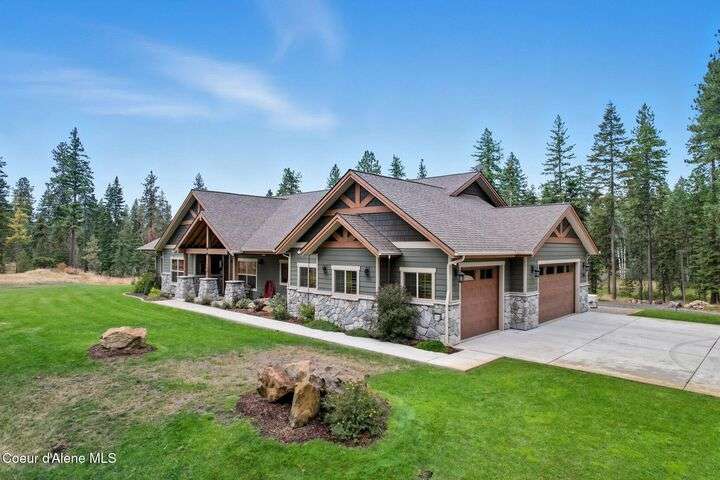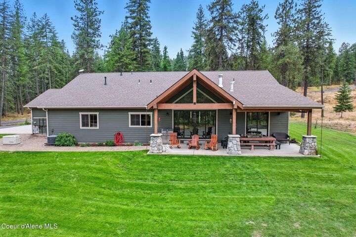 Just 5 MINUTES from downtown Coeur d'Alene and the Hagadone Marina, this remarkable 33+ ACRE ESTATE offers a rare blend of refined living and EQUESTRIAN excellence. Zoned for 2-acre lots yet designed with horses in mind, it's a property where luxury meets the ultimate equestrian lifestyle. The single-level custom home showcases fine craftsmanship throughout—featuring a gourmet kitchen, grand master suite, 2 additional private suites, a 4th bedroom, and a spacious 3-car garage. Designed for comfort and elegance, it serves as the perfect retreat after a day spent at the ranch. For horse enthusiasts, the property TRULY shines: an impressive 80'x88' barn/shop with 14' doors provides versatile space for stabling horses, storing hay and equipment, or accommodating oversized vehicles. The land is fully fenced and professionally parked out, offering multiple pastures, riding areas, and abundant room to expand with arenas, round pens, or additional barns. With no CCRs and bordering a 157-acre conservancy parcel, the estate delivers unmatched privacy and open space for riding. Practical amenities such as a high-producing 70+ GPM well, 400-amp service, automatic backup generator, pond, and asphalted drive enhance both daily function and long-term value. Whether envisioned as a private equestrian retreat, a working ranch, or a legacy estate for future generations, this beautiful property combines the freedom of acreage, the sophistication of a custom residence, and the unmatched convenience of being just minutes from town.