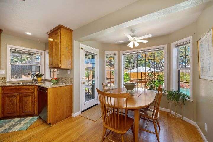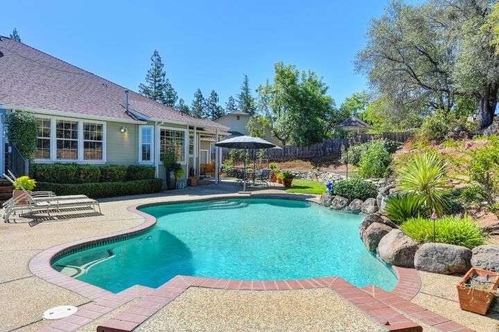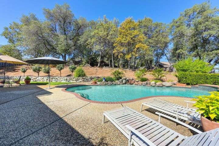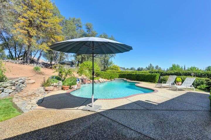 Nestled in the desirable Deer Crossing neighborhood, this gem is tucked into a quiet cul-de-sac, showcasing extreme pride of ownership. This private oasis features a built-in pool and beautifully maintained yard. Enjoy amazing sunsets from the privacy of the back deck and adjoining patio. Within walking distance of Placerville and nearby schools. A true haven for those seeking tranquility and convenience.