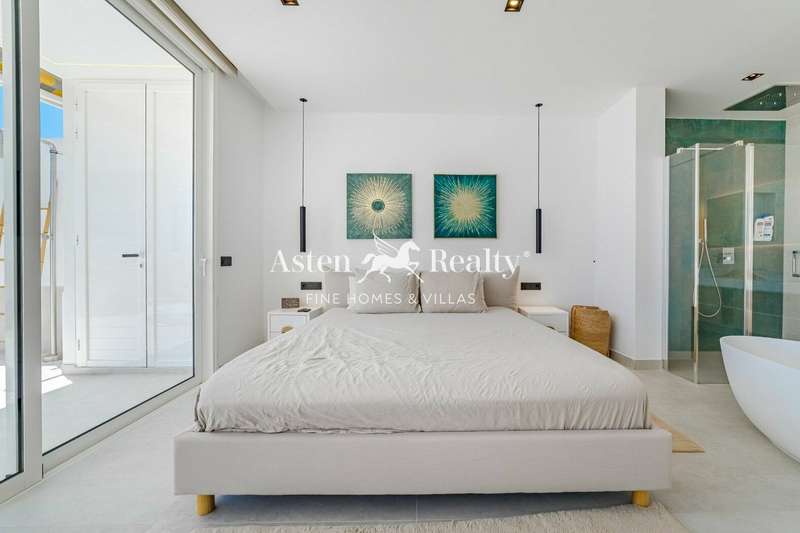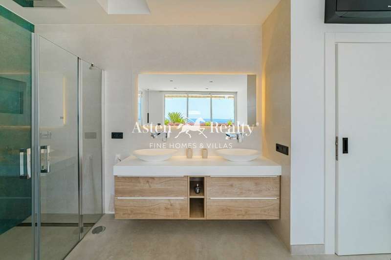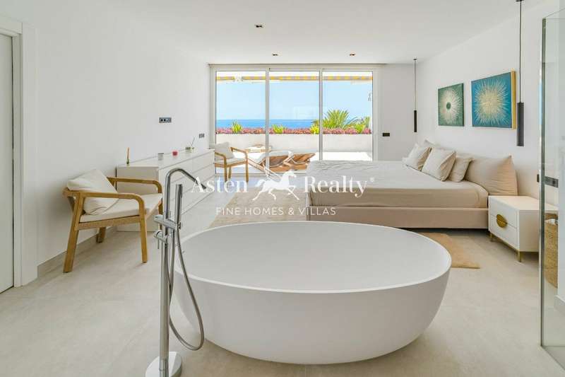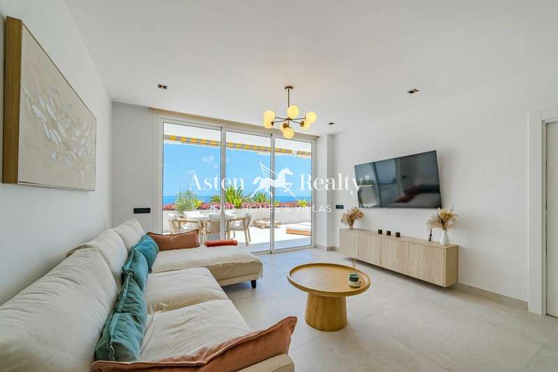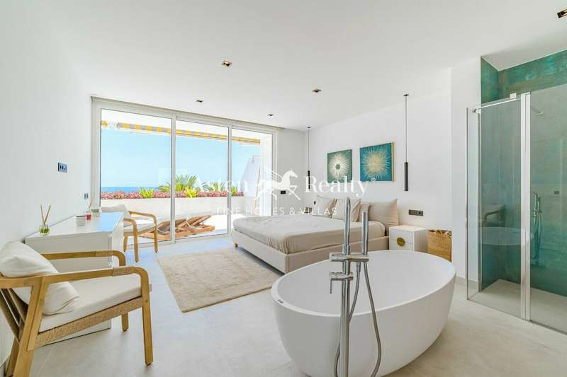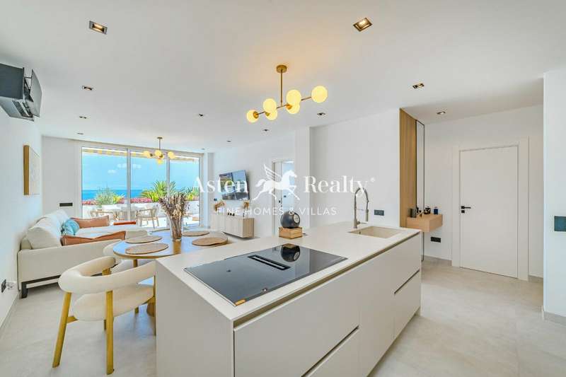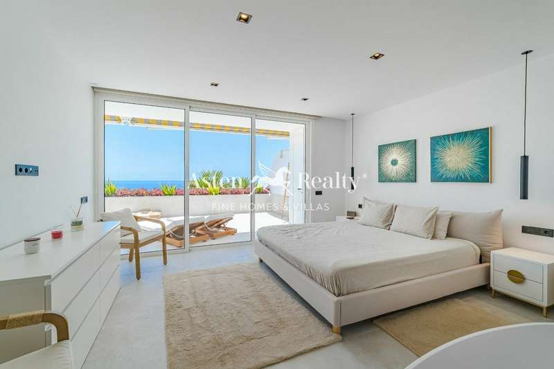 The private terrace is the perfect place to enjoy the stunning panoramic sea views, while the communal pool invites you to relax in a privileged setting.