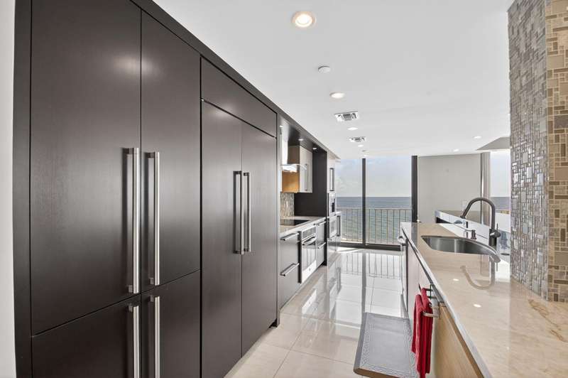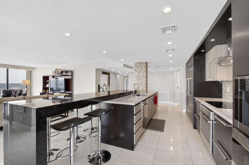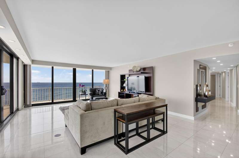 Welcome to your dream coastal retreat in the world-renowned Atrium Building! This magnificent, fully renovated three-bedroom, 2.5-bath condominium boasts direct oceanfront views, offering unparalleled panoramas of the beach and coastline. This unit lives like a single-family home in the sky with over 2,119 living square feet and a total of 2,700 square feet. Step inside this exquisite unit, expertly renovated to the highest standards, and be the first to experience its beauty since the completion of its updates. The gourmet kitchen was opened to the great room and was designed with an extra-large quartz island countertop and is the perfect spot to entertain your family and friends and is a chef's paradise, featuring top-of-the-line appliances, a built-in espresso machine. Each of the