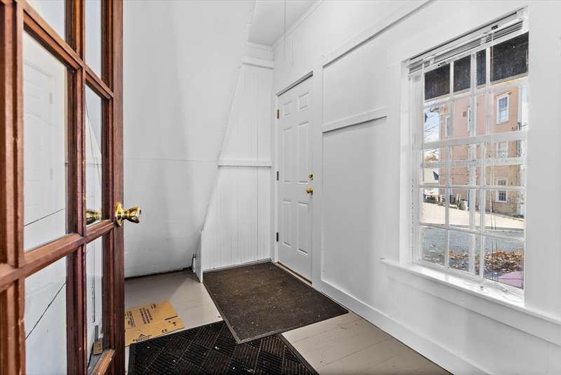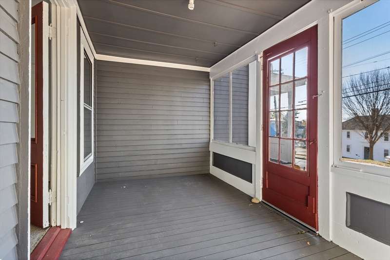 Attn Investors or Homebuyers! Vacant ground-floor one-level sunny Condominium in a two-family located adjacent to historic Exchange Hall. Two assigned side-by-side parking spaces with direct access to front entry with a covered patio. Enjoy a carpeted mudroom. There is a 2nd entrance featuring a screen porch overlooking Main St. Floor plan consists of 2 Bedrooms,1 Bath, an Eat-in Kitchen with walk-in Pantry with Laundry. The Living Room & Parlor are spacious and sunny. New carpet in BR's & Living Rm (hardwood under). Nice yard-exclusive use. Systems: 100-amp electric (2025) & gas-fired boiler (2016), gas H2O tank, roof (2014), entrance roof (2024). Bulkhead (Nov 2024). Freshly painted interior. Fridge, stove, dishwasher, washer/dryer included. New window glass, storms & screens (2025). New concrete floor in Basement w storage & separate utilities. Town Water/Sewer. Perfect location - MBTA across St! Grocery, shops, schools nearby.