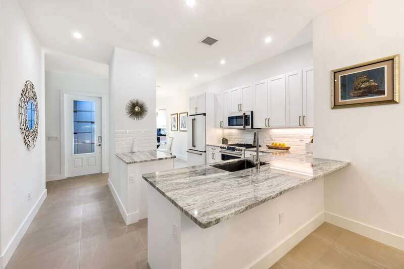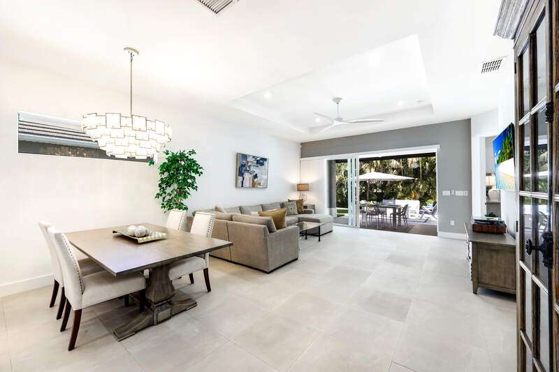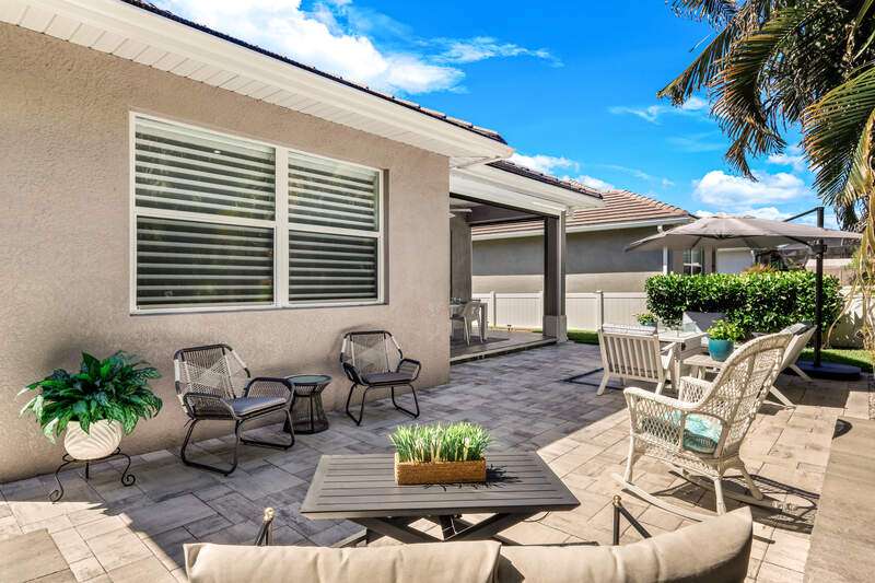 This beautiful 3-bedroom 3-full bath home is your perfect Naples retreat, located in the heart of the Bayshore Arts District. The Enclave of Naples Bay is a walkable community minutes from the Naples Botanical Gardens, Celebration Food Truck Park, Rebecca's at the 360 market, Bayview Park overlooking Naples Bay, Lake Avalon and Sugden Park. It is also a 5-minute drive to the home of the US Open Pickleball championships and Naples famous 5th Ave with its world class dining, shopping and renowned sparkling beaches! Built in 2020 and meticulously cared for, this Florida style home features Bahama shutters, an open kitchen floor plan with upgraded GE Cafe style appliances, granite counters, upgraded 42" Shaker style kitchen cabinets, 24" porcelain tile throughout, custom lighting, custom closets, impact windows and doors. A full wall of glass sliding doors lead to the rear Lanai featuring motorized roll down screens. The recently added backyard 30' paver patio is perfect for entertaining, lounging and outdoor BBQ's. This home also features a whole house Induct HVAC UV Air Purifier System and new Rain Bird Rain Sensor. Most importantly, seller's current lower premium flood insurance policy is assignable to the new owner! Don't miss this opportunity to own this exquisite property located in the heart of Naples.