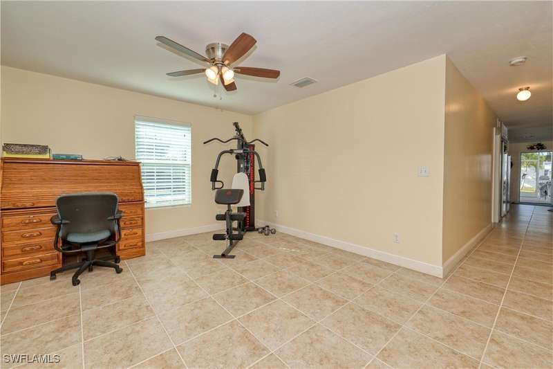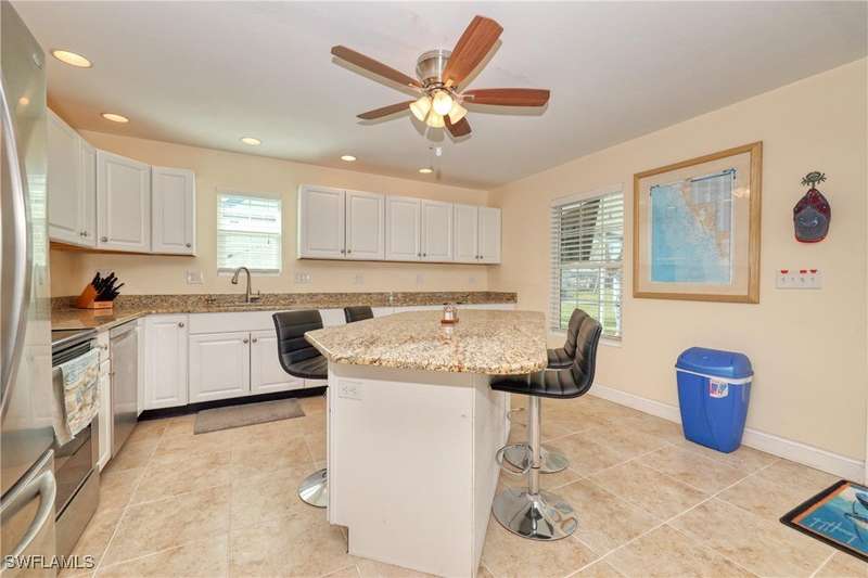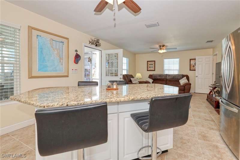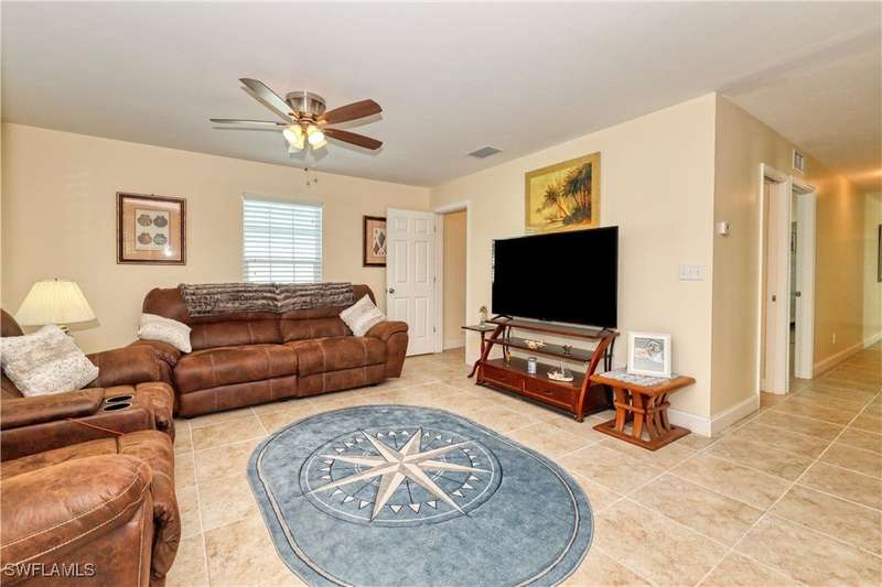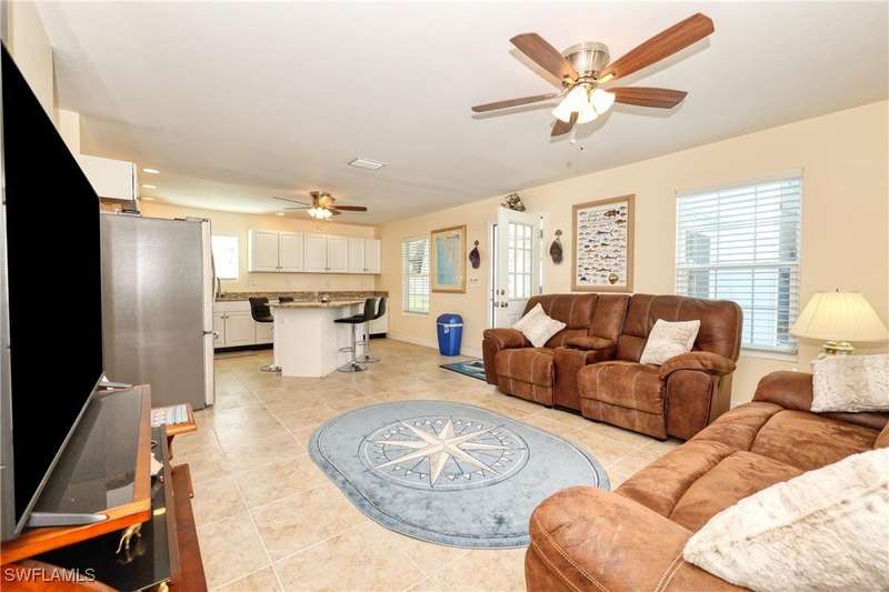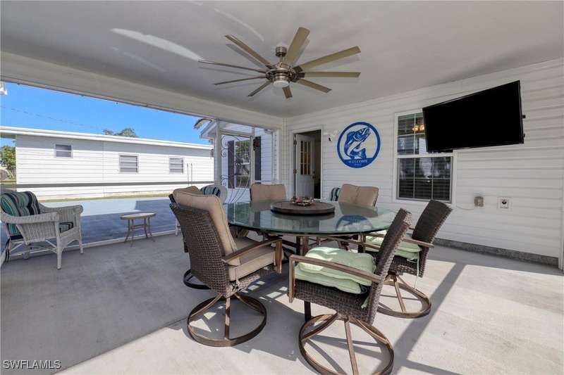 Welcome to your Fisherman's Paradise in Mobilehaven Estates! This beautifully updated 3-bedroom, 2-bathroom single-family ranch home offers everything you need to live the ultimate coastal lifestyle. Situated in a prime location, the property features a spacious and open floor plan, with tile flooring throughout. The modern kitchen boasts sleek stainless steel appliances, granite counter tops, and ample storage space, perfect for preparing your fresh catch of the day. Relax in the screened lanai, ideal for enjoying the serene surroundings. The over sized garage is a standout feature. The two car garage and home is designed to withstand a category 5 hurricane! The garage is also climate controlled, featuring 12.5-foot ceilings and enough space to store a 30-foot boat, making this home a true boater's paradise. Plus, there's a dedicated fish cleaning station for convenience. Clean your catch right at home. Other highlights include impact-resistant hurricane windows and doors for peace of mind, a concrete driveway, and an RV setup for all your travel adventures. The home's metal roof ensures durability, and the property is designed for easy maintenance, giving you more time to enjoy the water and nearby activities. Whether you're an avid fisherman or simply love the coastal lifestyle, this property offers the ideal combination of comfort, convenience, and outdoor adventure. Located just minutes from Fort Myers Beach, Sanibel, Captiva Beach. Don't miss out on the chance to make this stunning home yours!