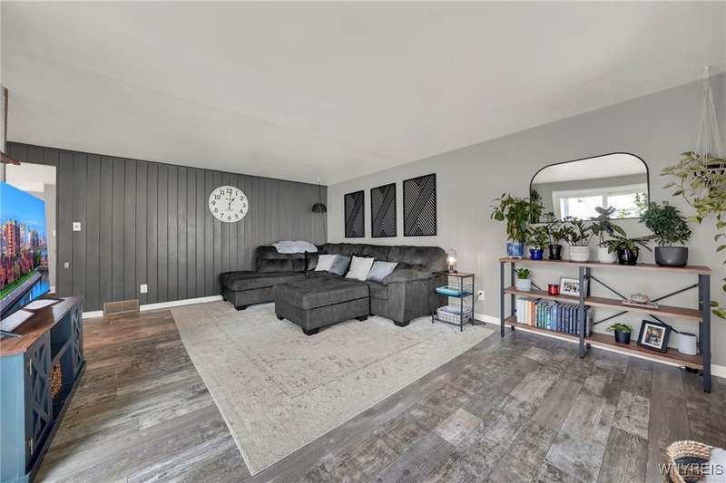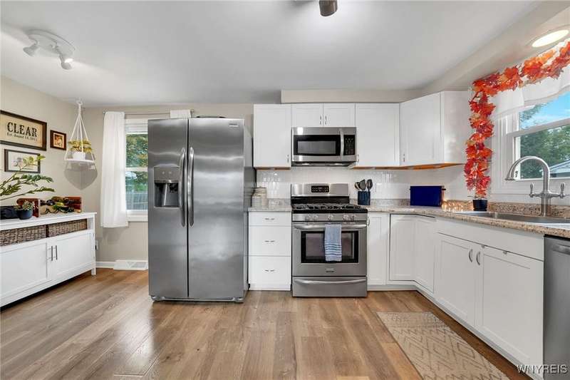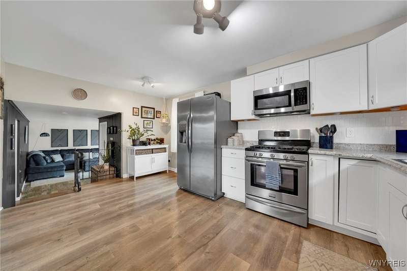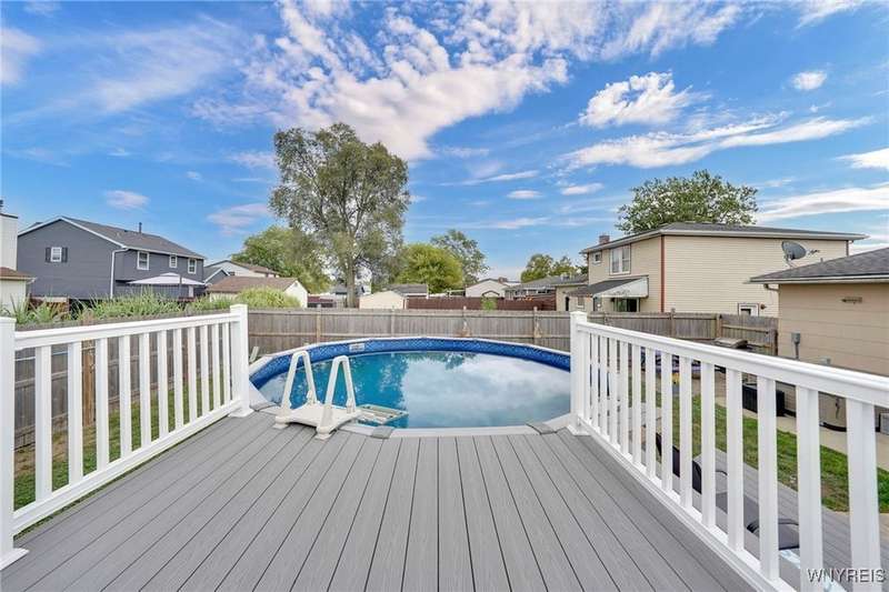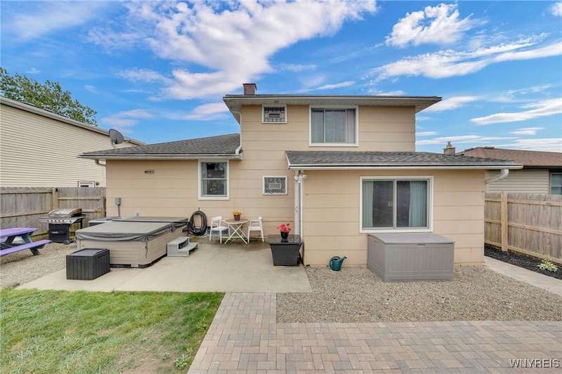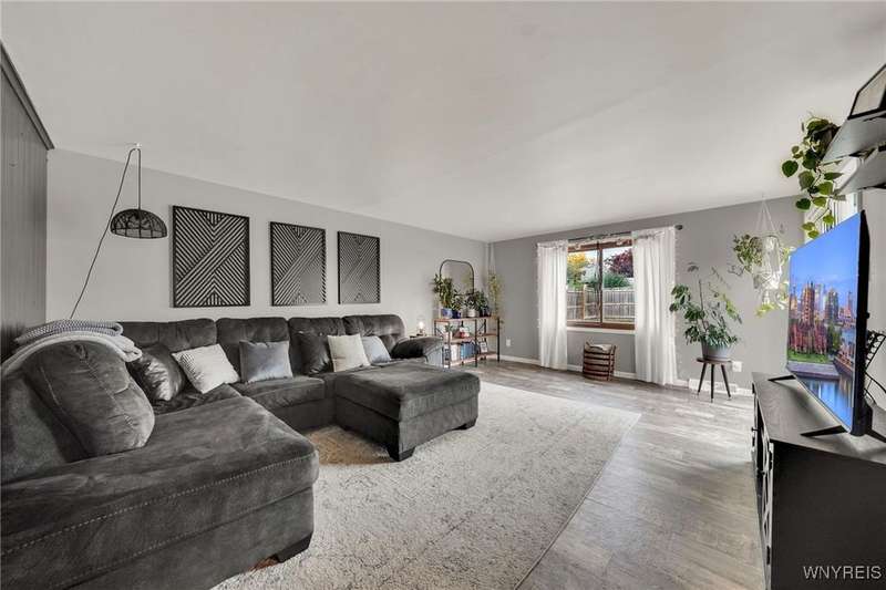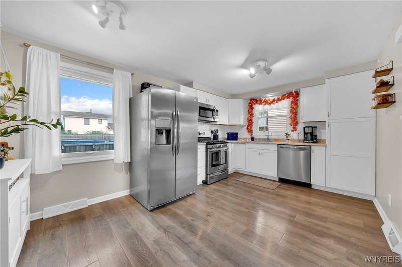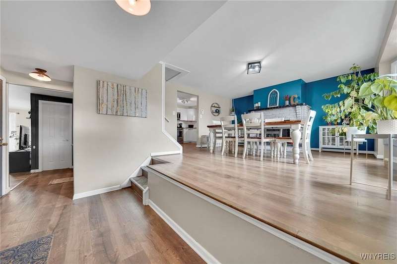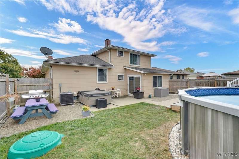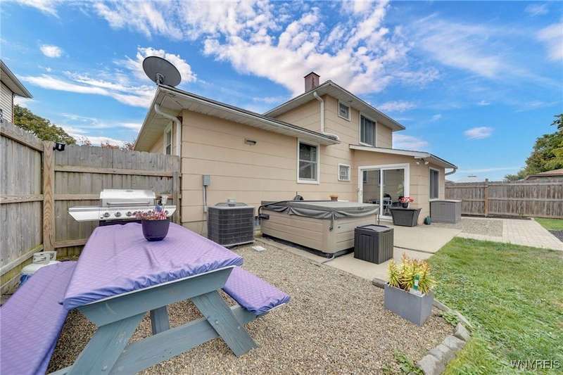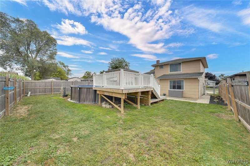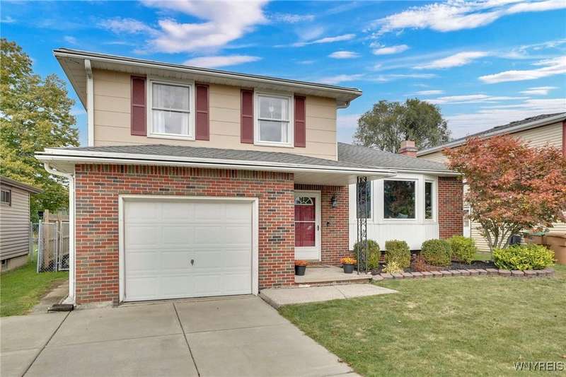 Beautifully maintained three-bedroom, one-and-a-half bath split-level home in the Depew School District! The totally remodeled eat-in kitchen features stainless steel appliances, including a refrigerator, dishwasher, microwave, and oven. Every room has been updated and freshly painted, with new flooring throughout the first floor. Enjoy comfort year-round with brand-new central air (2025). The formal living room, highlighted by a large bay window, is currently being used as a dining room, while the cozy family room offers sliding glass doors leading to a patio, hot tub, and above-ground pool?perfect for entertaining! The fully fenced yard and attached garage add convenience and privacy. The partially finished basement provides additional living and entertaining space. Per previous appraisal, dwelling is 1452 square feet.Showings begin September 26th @10:00 AM. Offers due October 1st by 3:00 PM.