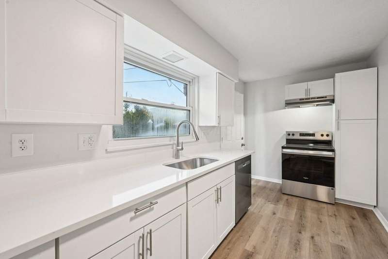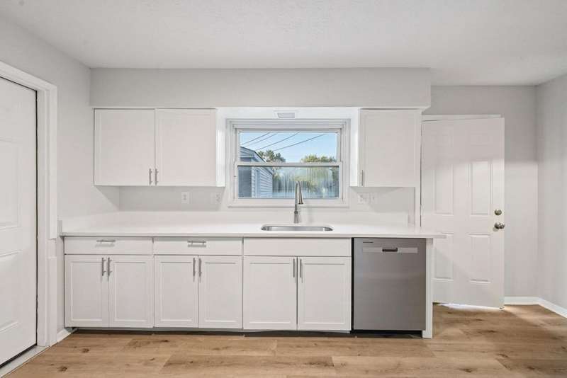 Looking for a remodeled ranch at an affordable price??? This beauty sits on a HUGE .23 acre lot and offers an oversized 1.5 car garage, 925 sf, 3 large beds, 1 bath, spacious back patio, and a fenced yard. The stunning kitchen boasts white cabinets, quartz countertops, stainless steel appliances, and modern fixtures. Recent updates include modern bath (w/ new shower surround, toilet, & vanity), new roof, vinyl windows, newer HVAC/WH, new flooring, updated electric/lighting, fresh int/ext paint, pristine landscaping, and more. Don't miss out on this one!! No FHA due to 90 day flip rule
