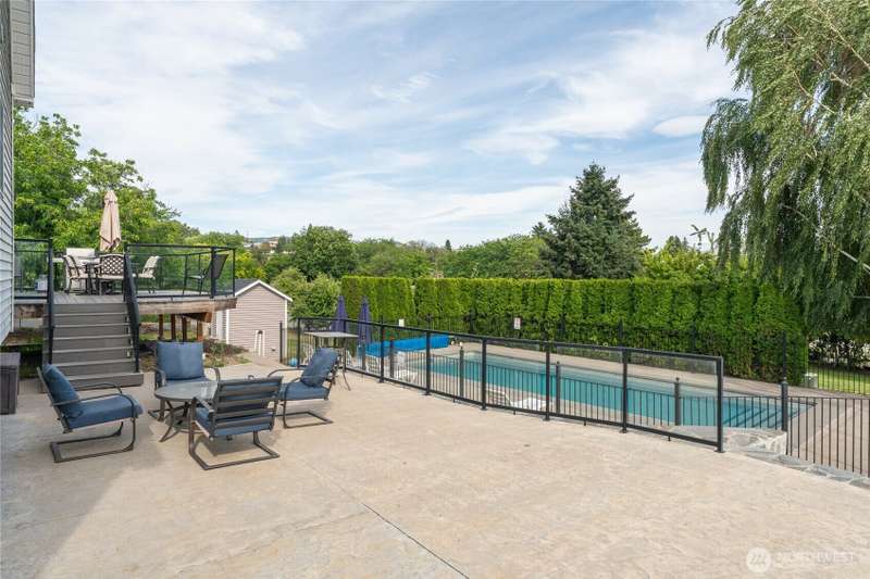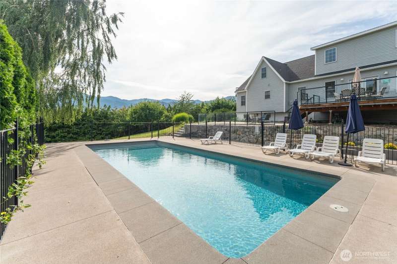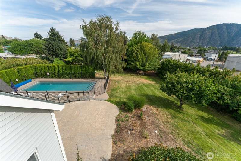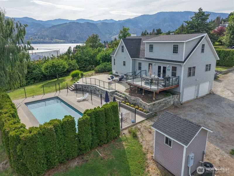 Beautifully appointed 1+ acre property just a short walk to downtown Manson and Lake Chelan! This fully furnished, turn-key home offers comfort, privacy, and luxury with a spacious master suite featuring a jetted tub and a custom body spray shower system. Original hardwood floors add timeless charm, while the expansive new patio and deck—over 1,000 sq ft—are perfect for outdoor living and entertaining. Take in stunning lake views from the private bedroom balcony or relax by the heated pool, safely enclosed with an elegant iron fence. The property includes a 3-car shop, 2-car garage, irrigation, fruit trees, and a privacy hedge. Zoned UR3, offering subdivision potential. Ideal as a personal retreat or investment opportunity!
