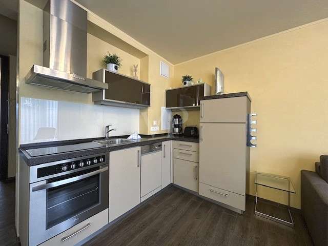 Let yourself be enchanted by the seaside resort of Kühlunsgborn, the seaside resort with flair! An apartment in a top location in the east of the seaside resort of Kühlungsborn! Just 3 minutes from the fine, wide, white sandy beach and in the immediate vicinity of the pier and the modern marina with exclusive stores and fabulous restaurants. The comfortable 2-room apartment offered here impresses with its outstanding location (just a stone's throw from the azure blue sea) and is part of a stylish vacation complex built to a high standard in 2009/2010. It primarily accommodates vacation guests all year round and is also ideal as a second home. The light-flooded 2-room apartment is exclusively and very tastefully furnished and is occupied over 200 days a year at peak times. The enchanting condominium impresses with its modern style, great comfort and sought-after Baltic Sea location. It is fully furnished, perfectly equipped and has pleasant underfloor heating, high-quality vinyl flooring and a walk-in wardrobe. The fitted kitchen is modern, well maintained and fully equipped. It is integrated into the bright living area. The open-plan living concept of the light-flooded living/dining area forms the focal point of the apartment. The large, south-facing, partially covered terrace is so inviting and extends the living space. It is accessed via large modern window elements and sliding glass doors. The practical designer bathroom with real glass shower and natural light is decorated in warm colors. The apartment is perfectly complemented by the approx. 12 m² south-facing terrace, where you can enjoy your breakfast in the morning sun, sheltered from the wind. The apartment has been rented out profitably for years and is very popular. The complete inventory is included in the purchase price. This beautiful apartment offers everything your heart or the heart of your guests desires and represents a stable capital investment! Take advantage of this rare opportunity to acquire a well-kept and profitable property in a prime location in Kühlungsborn!