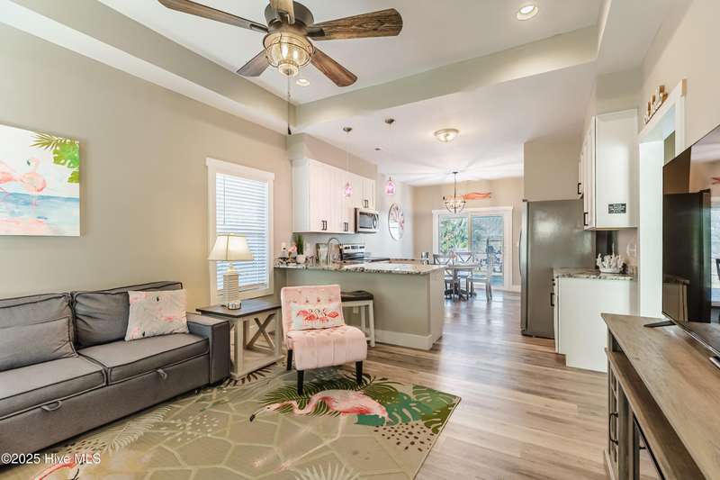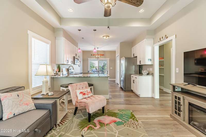 A rare opportunity that does not come on the market often! This fully furnished duplex in Ocean Isle Beach is less than a mile from the beach, located in an X zone, with NO HOA. You can take a golf-cart straight to the island, making it an ideal investment, second home, or a mix of both. Rent out both sides or enjoy one for yourself while generating income from the other. Each side features 2 bedrooms and 1 bath, with charming personality throughout, one unit playfully decorated in a flamingo theme and the other in a whimsical mermaid motif. Both kitchens offer granite countertops and stainless-steel appliances, making them turn-key and rental-ready. Outside, you will find a large backyard perfect for relaxing or entertaining, complete with a shared covered common area, picnic table, and wet bar an inviting space guests will love. This property is adorably decorated, immaculately maintained, and sure to steal hearts the moment anyone enters through the door. A truly special find in one of the most beloved coastal towns. Don't miss your chance to own this versatile and delightful beach retreat!