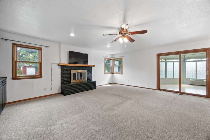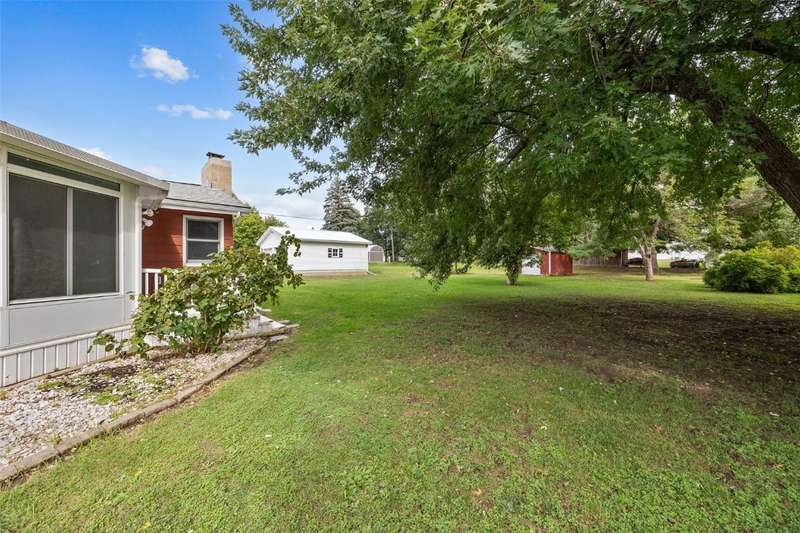 Small town living at its finest! Welcome to this beautifully maintained 3-bedroom, 2-bath home, perfectly situated near the local country club, parks and pool. Stepping inside, you’ll notice the charming features throughout such as the hardwood floors and builtins. The spacious living areas and 4 seasons room offer plenty of space for relaxing and entertaining. The kitchen provides ample counter space with a breakfast bar and flows into one of the living spaces with a gas fireplace; perfect for cozying up after a long day. Outside, enjoy peaceful mornings and quiet evenings in the private yard with mature trees. The backyard also includes a storage shed, great for easy access to lawn equipment. This well-loved home is filled with charming features and timeless details that create a cozy and inviting atmosphere.