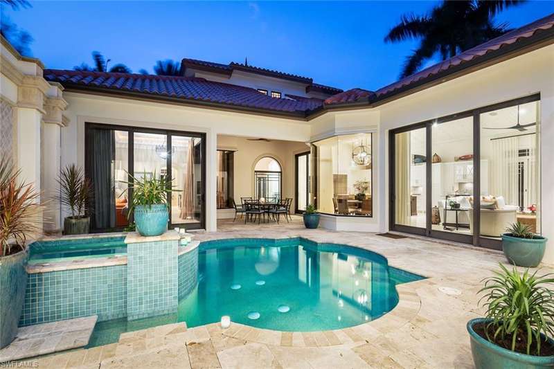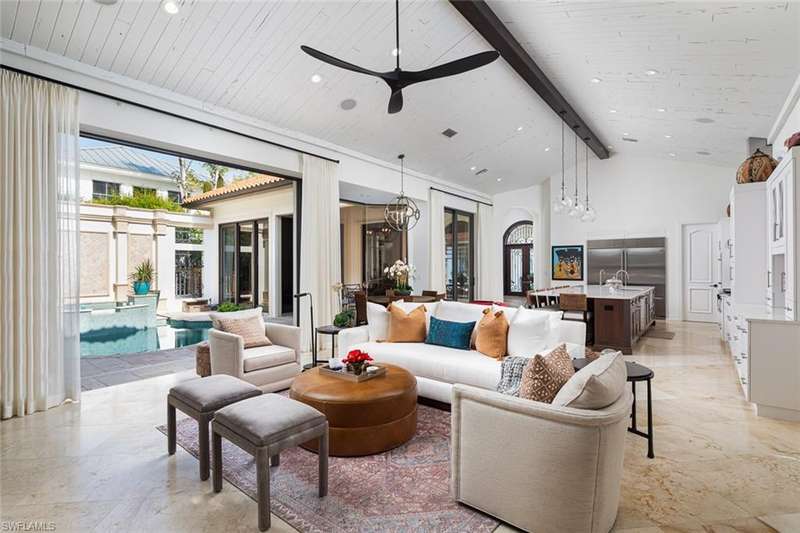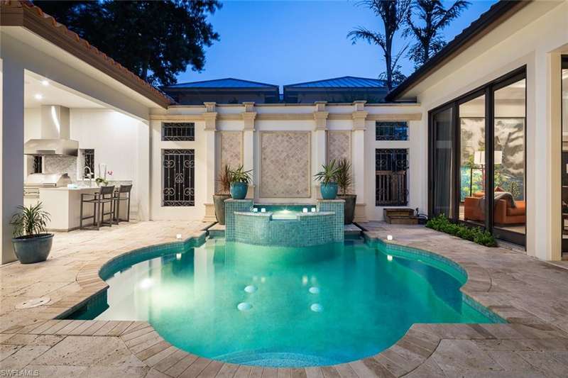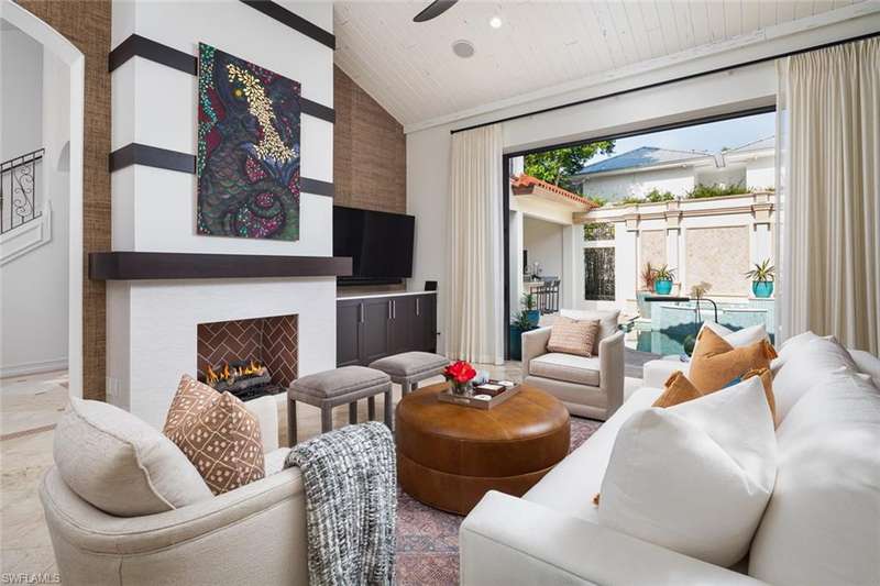 Unmatched location in the heart of Old Naples just one block from 3rd Street South and three blocks to the beach. This timeless, elegantly updated home offers refined living steps from world-class dining, boutique shopping, and white sand shores. The light-filled layout features a dramatic entry, soaring ceilings, spacious living areas, and a state-of-the-art chef s kitchen. Natural materials, custom finishes, and bold accents create a sophisticated yet comfortable atmosphere. Enjoy seamless indoor-outdoor living with a serene courtyard, pool, lanai, and private guest cabana. A rare opportunity for those seeking a low-maintenance ease, and a lock-and-leave lifestyle in one of Naples most desirable neighborhoods.