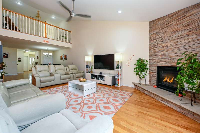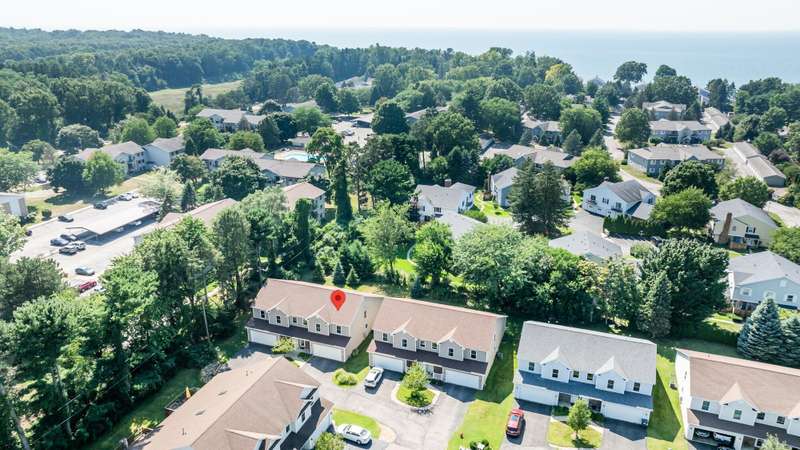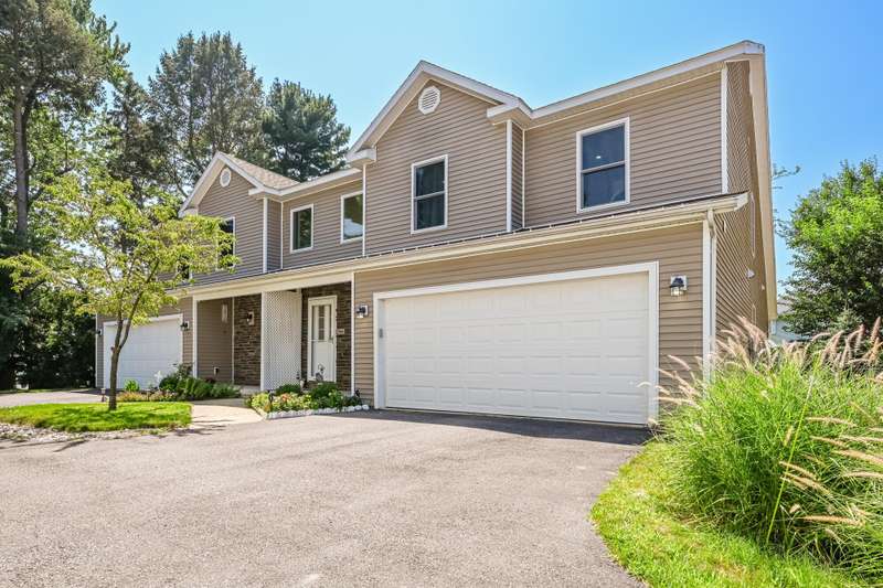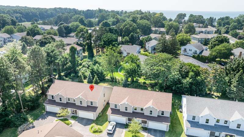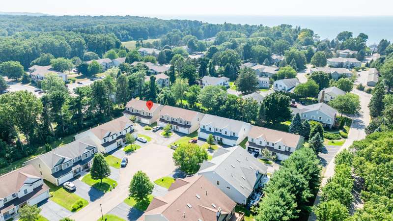 Spacious & Meticulously Maintained Townhouse-Style Condo in Shoreham Condominiums, Lakeshore Schools with over 3,000 finished sq ft! This 5BR/3.5BA home offers the space of a single-family residence with the ease of condo living. The main level features an open floor plan with cathedral ceilings, hardwood floors, stone mantle gas fireplace, and a beautifully appointed kitchen with premium newer appliances-KitchenAid dishwasher, JennAir stainless refrigerator, new Maytag gas range, Whirlpool washer/dryer with pedestals. Enjoy a convenient main-floor primary suite with walk-in closet and private bath, plus main-floor laundry. Upstairs offers a loft area, 3 large bedrooms and a full bath. The finished lower level includes a family/rec room, bedroom, and full bath-perfect for guests. Additional highlights: walk-in pantry, concrete patio, large backyard, 1-owner pride, and a quiet, convenient location near Lake Michigan, shopping, restaurants, and schools.