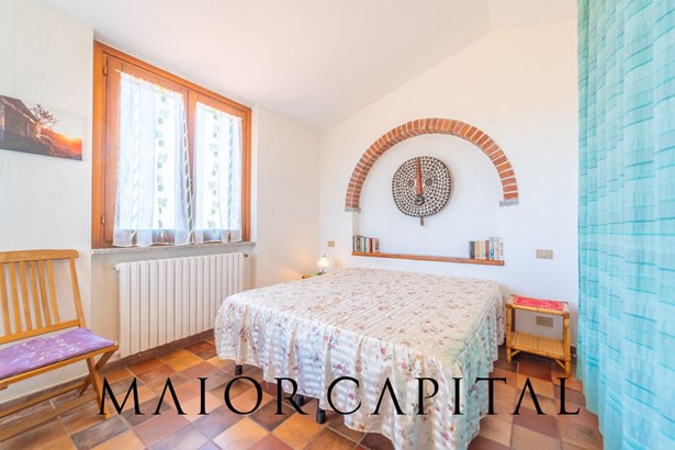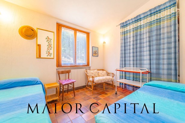 The first villa, developed on two levels, welcomes guests with a covered veranda in a panoramic position, supported by elegant granite pillars, perfect for relaxing in the shade while admiring the surrounding landscape. Inside, the ground floor offers a bright living room, a separate kitchen but in direct communication with the living room, so as to maintain a convivial atmosphere, two bedrooms and a bathroom with a shower. On the first floor is a third bedroom with a private terrace, ideal as a master suite with authentic charm. A bathroom completes the floor.