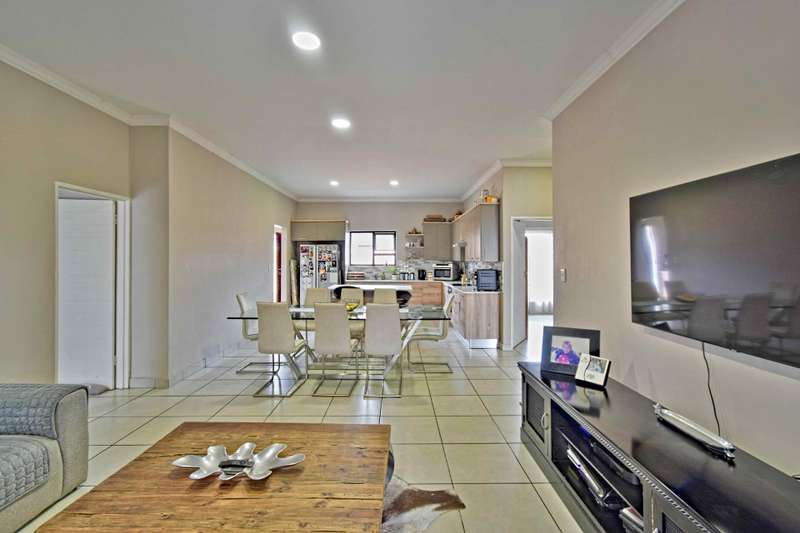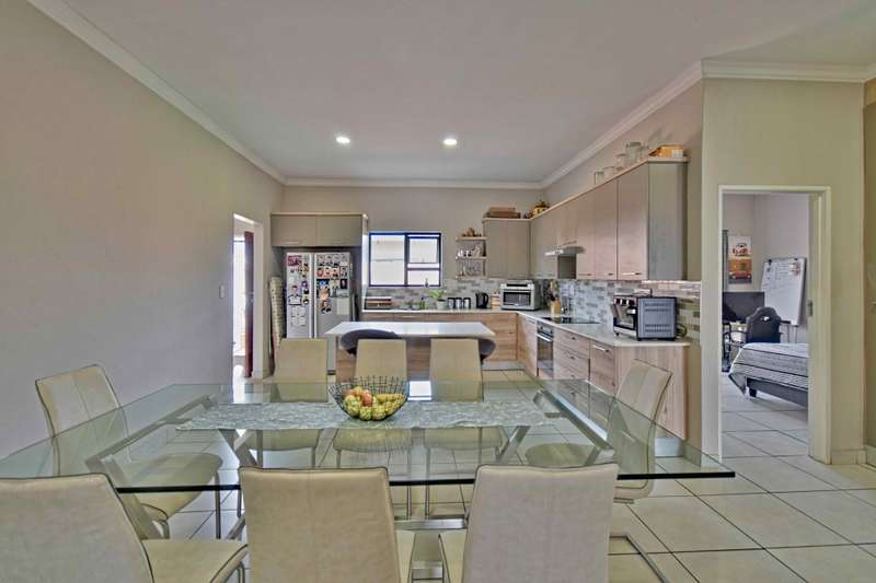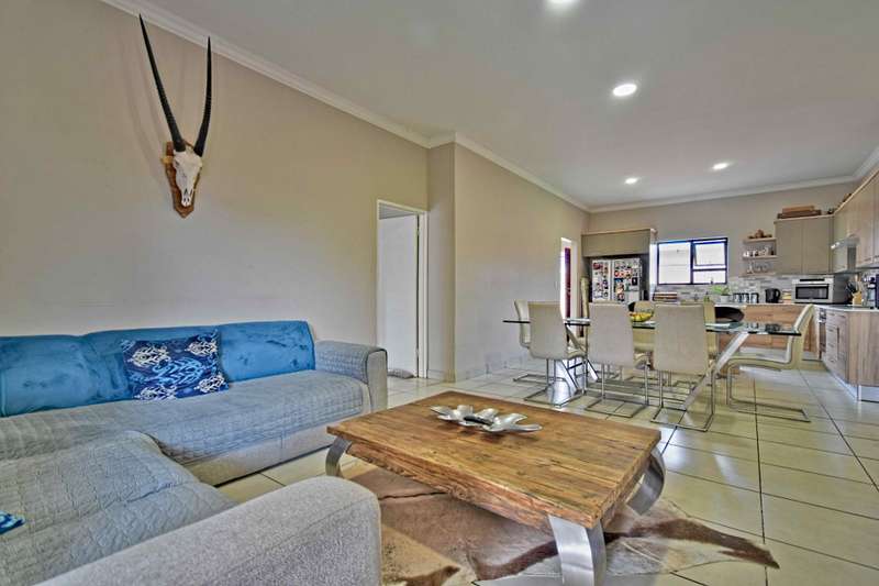 Secure and Modern Living! Exclusive to Chas Everitt. Welcome to this beautiful and contemporary three bedroom home nestled within a secured complex, within Six Fountains Estate. This fairly new property boasts a stylish open plan lay out, that seamlessly connects the kitchen dining and living areas. Perfect for modern living and entertaining. The kitchen boasts ample cupboard space and a scullery with enough space for a double fridge and space for all your appliances. The home features three spacious bedrooms. The main bedroom is en- suite and the 2nd and 3rd bedrooms are serviced by a full bathroom. The living areas open out with sliding doors to an under cover patio, complete with a built in braai. Ideal for hosting friends and family all year round. Outside is a private, wrap around and pet friendly garden. An outside toilet and the automated double garage rounds off the property. The unit is situated in the IQ Whistle Thorn complex, with easy access to the Estate's dam area and walkways. Six Fountains Residential Estate offers an assortment of amenities for residents to enjoy, including walkways, picnic spots, fishing dams, and an array of bird species. The estate is surrounded by an impressive solid concrete-and-brick wall with high-voltage electrified fencing and strict 24-hour security control with biometrics and access control and is perfectly located close to all amenities, such as great schools (private and public), shopping centres, hospitals, and easy access to the N4 to N1.