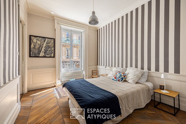 Located on Rue de la Charite, in the heart of the Ainay district, in the second arrondissement of Lyon, this 130sqm apartment (127.46sqm Carrez Law) is located on the first floor of a beautiful, perfectly maintained bourgeois building. From the entrance, the various spaces invite us to calm and relaxation. Here, all the markers of the old, such as the herringbone parquet floors, the moldings and the small-paned openings have been preserved and subtly combined with a contemporary vision in order to enhance this place already imbued with a most certain cachet.