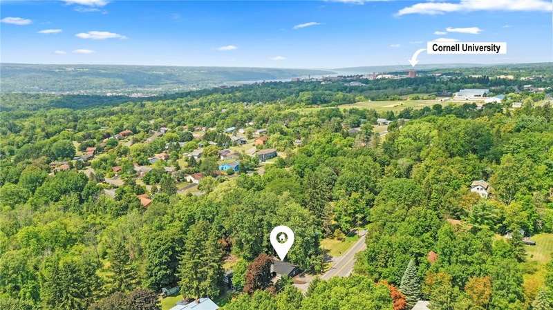 Discover the possibilities at this refreshed hillside ranch offering over 2,700 sq. ft. of versatile living space in Ithaca's sought-after East Hill. Just minutes from Cornell University, downtown Ithaca, parks, and trail systems, this property blends a prime location with a flexible layout to fit your needs. The home features a high efficiency heat system, thermal windows, metal roof, refreshed lighting, paint, and trim throughout, granite countertops and high end finishes. Main Level ? Bright, Functional & Single-Level Living Ready: 4 bedrooms and 1 bath. Refinished hardwood floors extend across the main level, featuring four bedrooms and a full bath. The open kitchen, dining, and living room?with a cozy wood-burning fireplace?create the perfect gathering space. Enjoy seamless indoor-outdoor entertaining with access to a large deck overlooking the backyard. A spacious mudroom, main-floor laundry, and two-car garage enhance everyday convenience. The kitchen shines with brand-new appliances, which may convey with an acceptable offer. Lower Level ? Income Potential or Guest Space: 1 bedroom plus office and 1 bath. The walk-out lower level is zoned for two units and separately metered, making it ideal for a permitted accessory apartment, in-law suite, extended living space, or two unit home. This level offers a kitchen, living area, bath with laundry, one bedroom, and a bonus room, all with durable laminate flooring for easy upkeep. Why You'll Love It - Whether you want a spacious five-bedroom home, the ease of single-level living, or a property with income-producing potential, 126 Pine Tree Road delivers flexibility, location, and move-in readiness?all in one package.