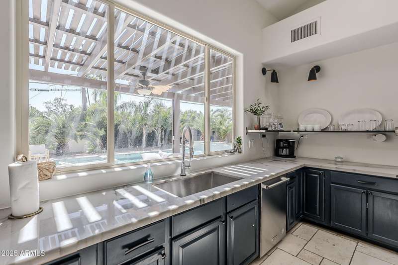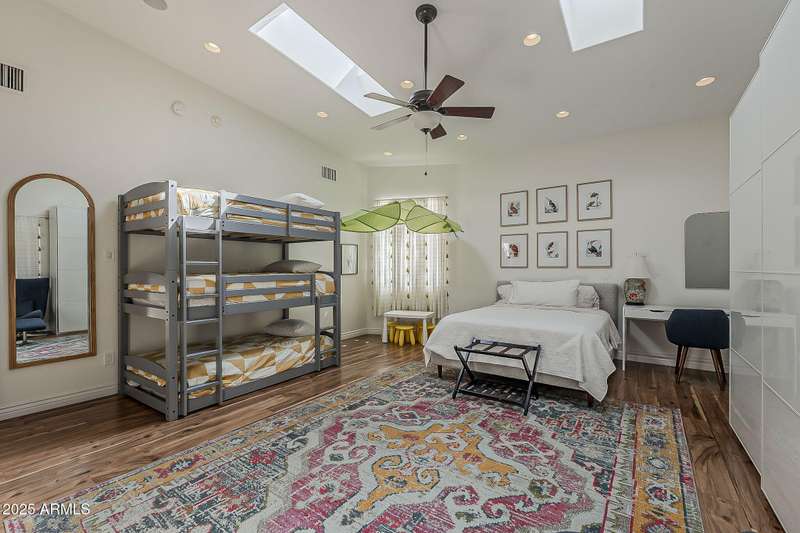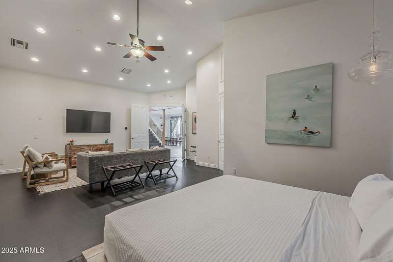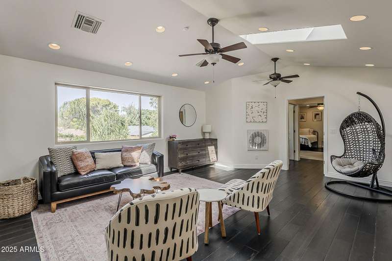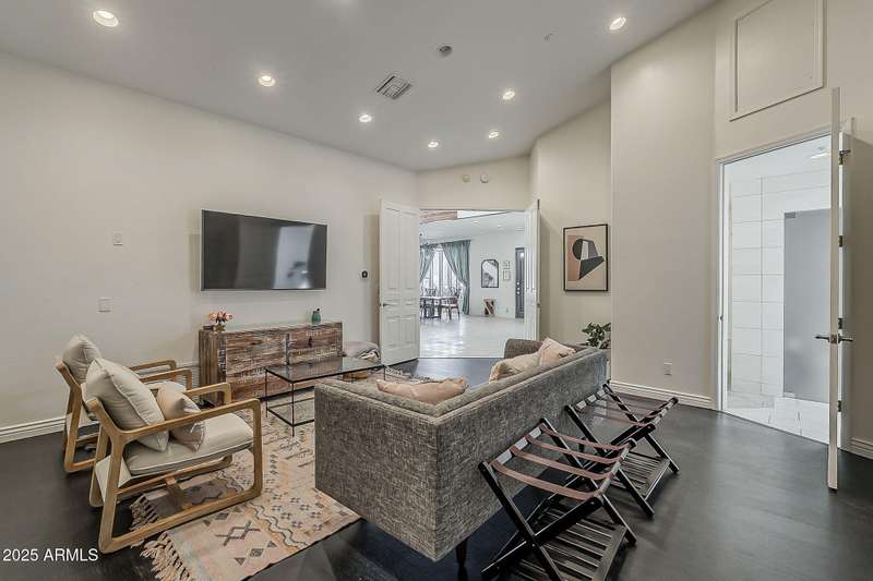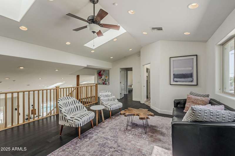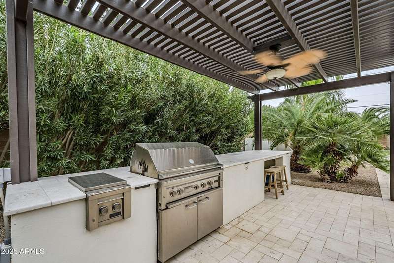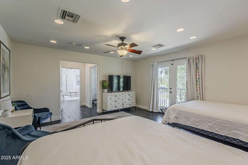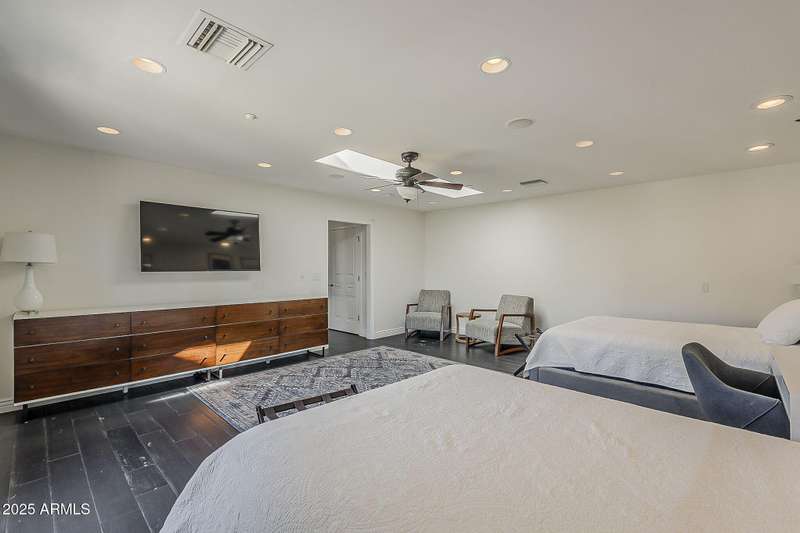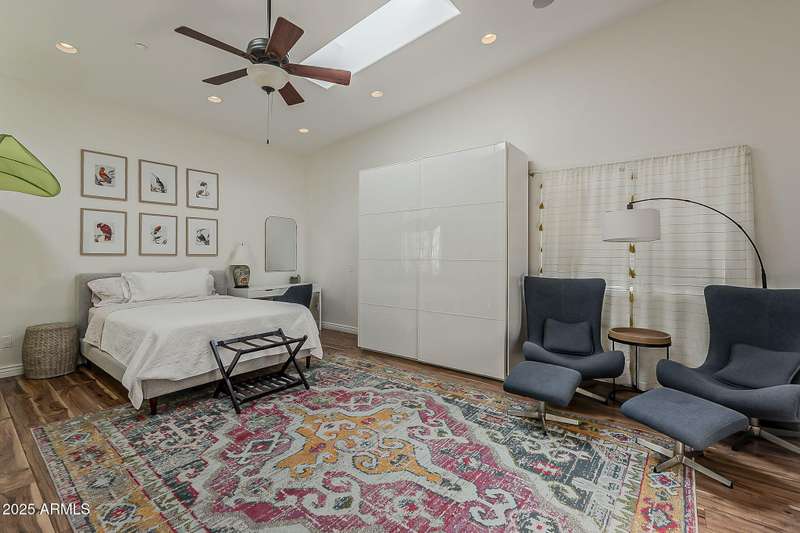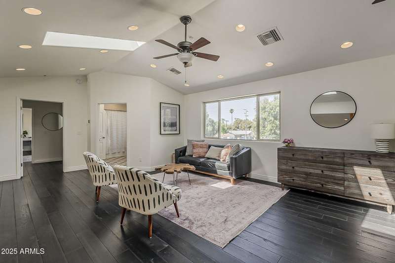 Welcome to this beautifully reimagined Central Corridor retreat, where timeless 1960s character meets modern design. Completely rebuilt through a meticulous $500K renovation, this 6-bed, 6-bath, 5,500 sq ft residence delivers the space and sophistication today's buyers crave. Step inside to soaring ceilings, warm wood accents, and natural light that fills the open great room. The gourmet kitchen anchors the home with a statement custom quartz island, dual ovens, gas cooktop, as well as custom cabinetry. Every bedroom is oversized—two with Juliet balconies and spa-like ensuite baths. The home includes a dual-primary layout, movie/game room with kitchenette and bath .The entire smart home is equipped with features for effortless living. With a simple command, you may lock the front door from your Master bedroom oasis, dim, turn on/off the lights, heat up the spa on your way home from dinner, and play your favorite music. Step outside into an elite custom designed entertainer's dream: travertine hardscape, heated pool and spa with Baja shelf, putting green, pergolas, firepit, built-in Lynx BBQ, and lush, mature landscaping. An owned 11.4 kWh solar system offers a rare grandfathered APS plan for energy credit at retail rate. With a new roof (2023) on the main home and flat roof (2025) on the movie room (both included transferable warranties), updated lighting and gorgeous flooring throughout. This property is located in an absolute unbeatable location near Central Ave. This quiet corner-lot property blends luxury, function, and community. Come see how beautifully modern living fits into one of Phoenix most beloved and sought after neighborhoods. AGENTS PLEASE KINDLY READ.OPTION. Pending offer, 6th bedroom to be converted to garage prior to escrow if buyer desires!!!! Furniture is also negotiable with proper offer. ** Seller has numerous garage options/plans, contact listing agent for details!