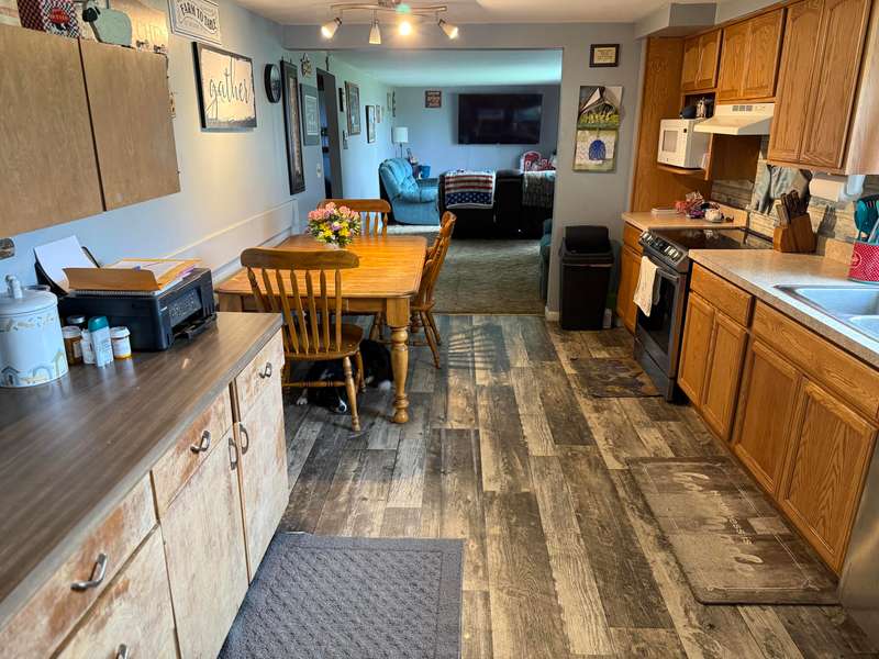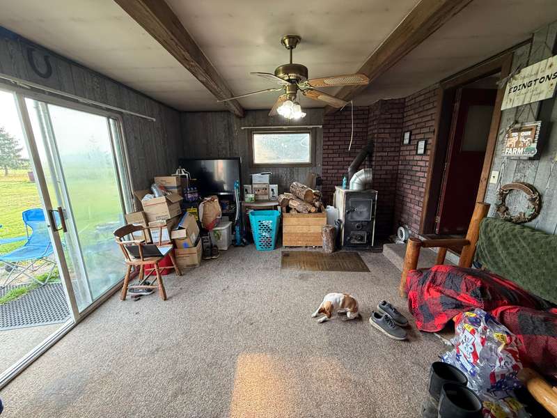 HOME AND WORKING FARM OPERATION with a manure containment facility in the whole back barn and a 100-gallon MiraFount livestock waterer. The hay barn holds up to 570 4x5 round bales (barn is 49 x 78). Pole barn comfortably holds 120 cattle including cement bunk feeders inside and outside the barn (size 40 x 77 and 40 x 63.6 approx). Comes with 78 acres mostly enrolled in the GRP. The 2 (once 3) bedroom home includes newer kitchen appliances, washer/dryer and an open floor plan between the kitchen and living room. There is a large bathroom and 1/2 bath in the laundry room. Septic was pumped in 2021. Options for heat include oil, wood and geothermal/heat pump. 400 Amp electric service outside was done in 2020. Greenhouse and a couple storage barns as well. Appointment required.