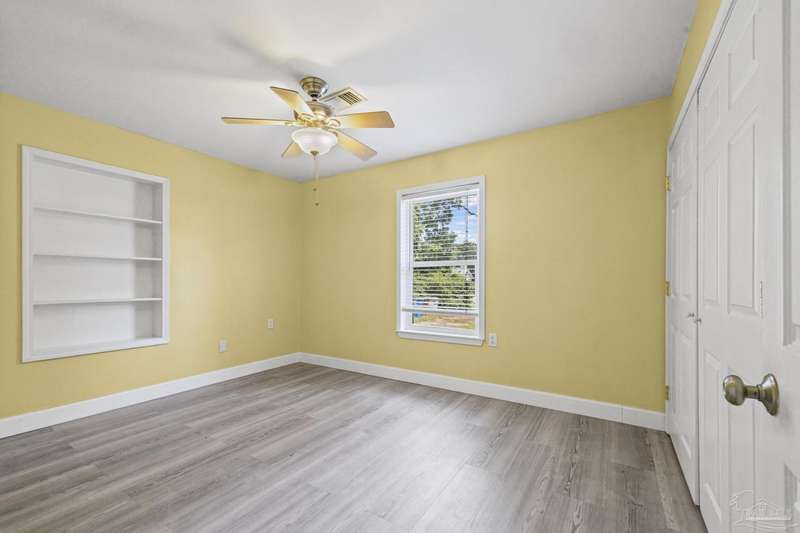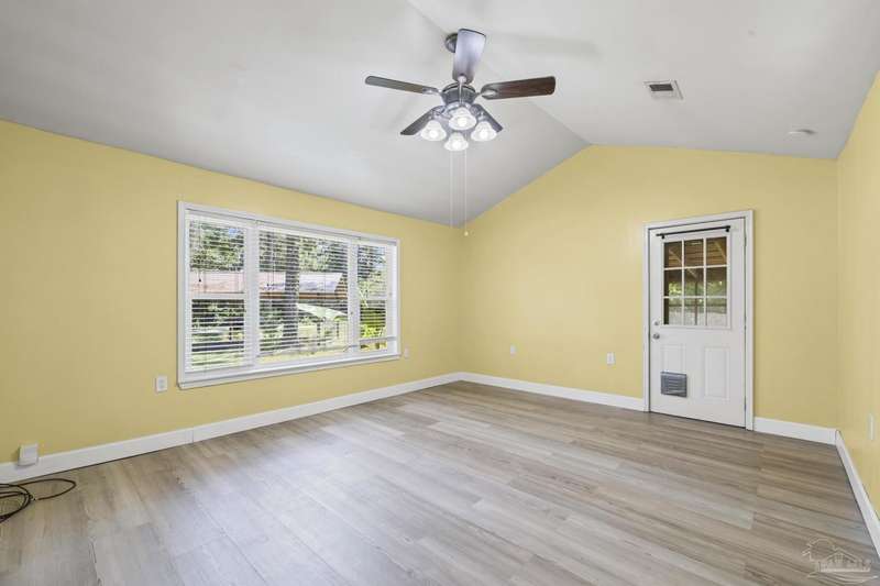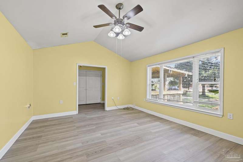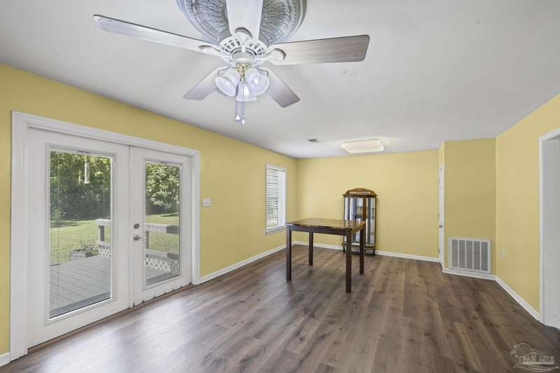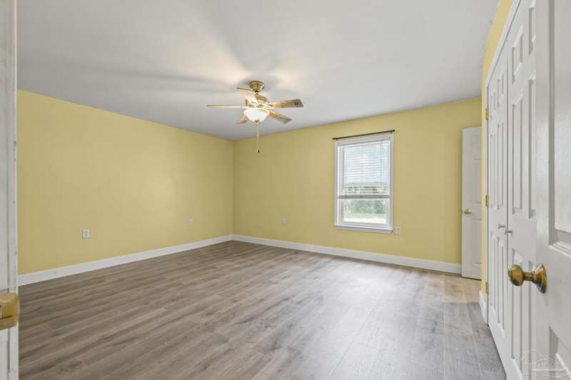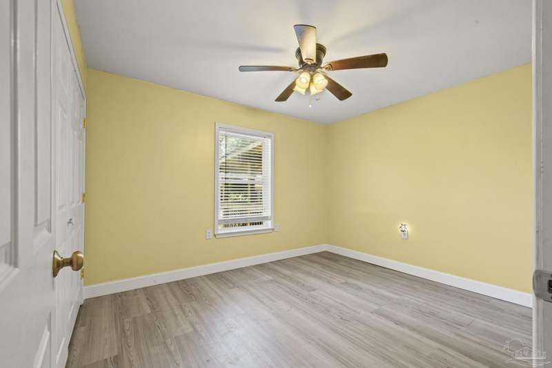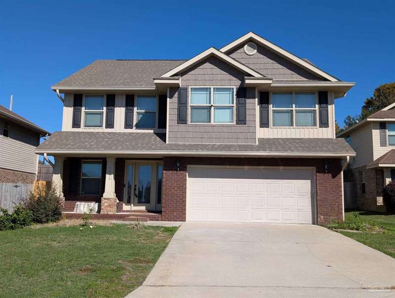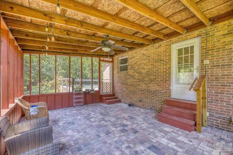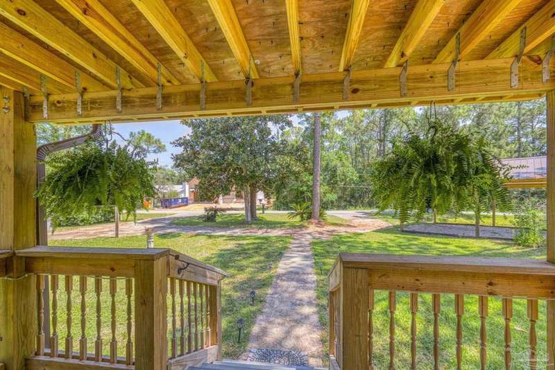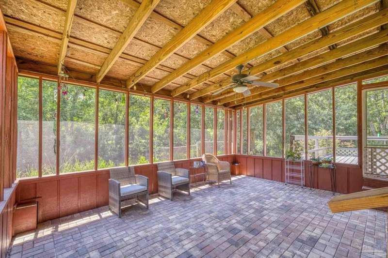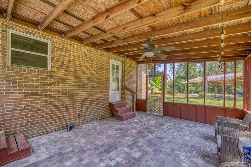 **SELLER CONCESSIONS AVAILABLE AND OPEN TO OWNER FINANCING** Are you searching for the perfect Gulf Breeze home? Search no longer! This 4-sided brick ranch sits on a double lot with woods in the back for a secluded feel while enjoying close proximity to Pensacola Beach and restaurant and shopping venues. A newly built covered front porch was added to allow for a lovely greeting area for your guests. In addition, a screened in covered porch with a ceiling fan is a perfect area to sip your morning coffee and enjoy the serene surroundings and sounds of birds and fish in the pond. The circular driveway is perfect for guest parking as well as the addition of the pole barn in the front. This, plus the attached 2 car garage makes this home an entertainer's dream! In the backyard you will see a ginormous fenced in yard and a newly installed out building. Inside, observe the fresh paint throughout the home and the absolutely massive eat in kitchen! Beautiful French style doors lead from the kitchen to the oversized back porch. High vaulted ceilings featured throughout the home to give an extra luxurious feel. The primary suite features 2 large closets and a beautifully redone full bath with beautiful new tile and stand-up shower. The 2 bedrooms are perfect for guests and include large closets. The spare bath features a shower tub combo and a single vanity. Schedule your showing today!